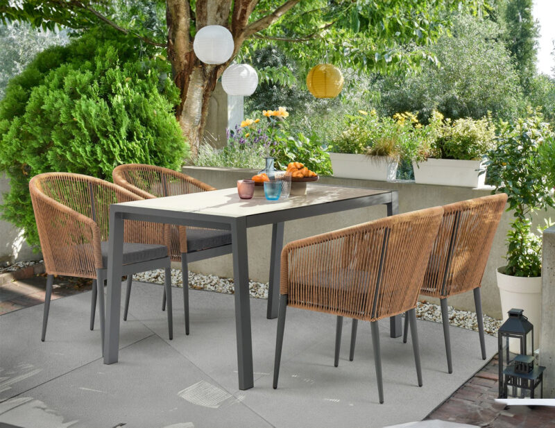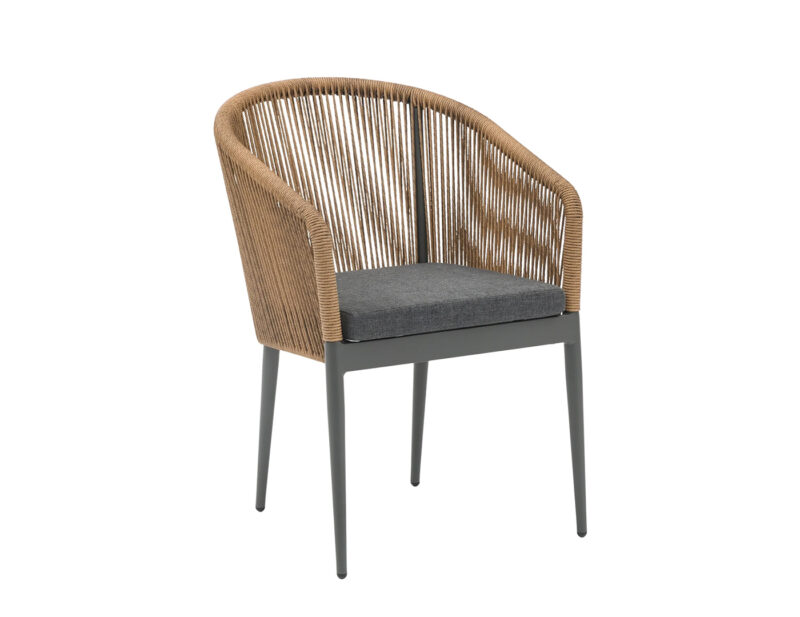 Pútavá jedálenská stolička Amigo v odtieni natur so štýlovým rope výpletom a pohodlnom prevedení.
