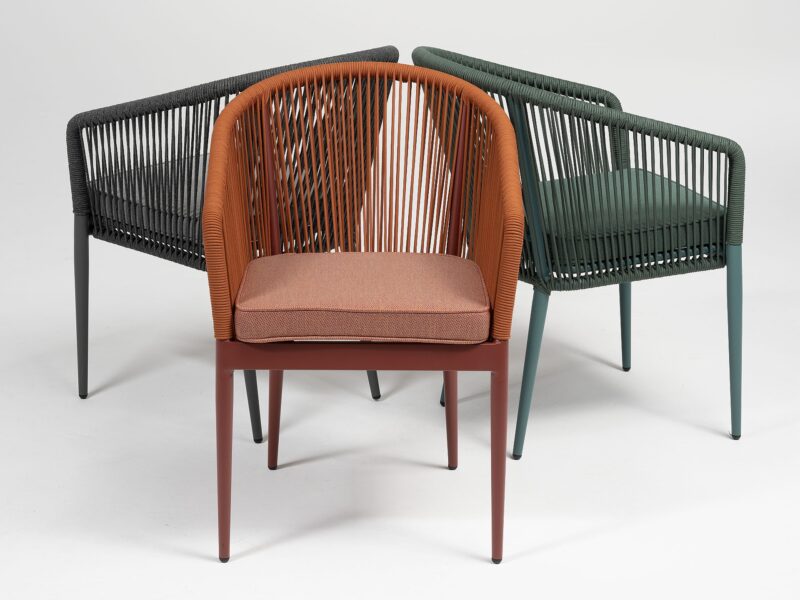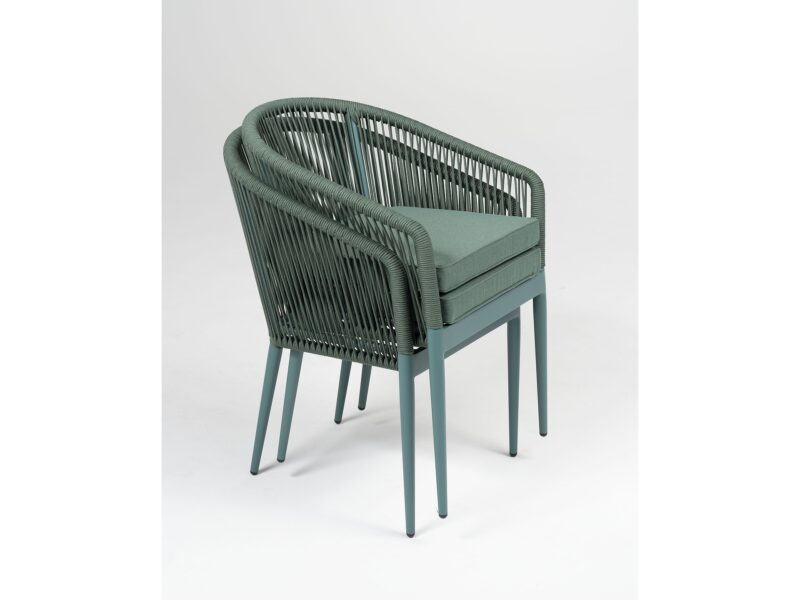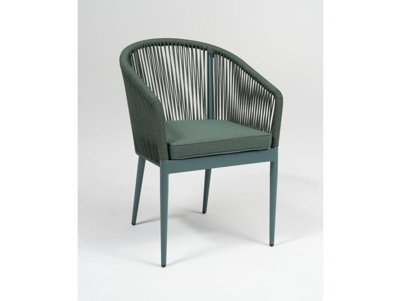 Pútavá jedálenská stolička Amigo v zelenom odtieni so štýlovým rope výpletom a pohodlnom prevedení.