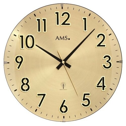 Nadčasové klasické nástenné hodiny v zlatom prevedení ozvláštnia vašu obývaciu izbu a tiež skvele zapadnú do interiéru pracovne. Kombinácia skla, dreva aj kovu a minimalistického spracovania robí z hodín ten správny kúsok pre interiér vášho domova.Nehrdzavejúci ciferník na 0,5 cm drevenej lakovanej základni. Čísla na ciferníku sú vystúpené 4 mm a veľmi dobre viditeľné aj z väčšej vzdialenosti. Úplne presné hodiny riadené rádiovým signálom. Quartzový hodinový stroj na batériu. Predĺžená záruka na 3 roky!Nástenné, stolné a podlahové hodiny AMS sú spojením elegancie a precíznej nemeckej kvality. Do detailu prepracované hodiny AMS sú vyrábané už viac než 100 rokov v nemeckom Black Foreste. Nemecké hodiny AMS sú hodiny s trvalou hodnotou.
