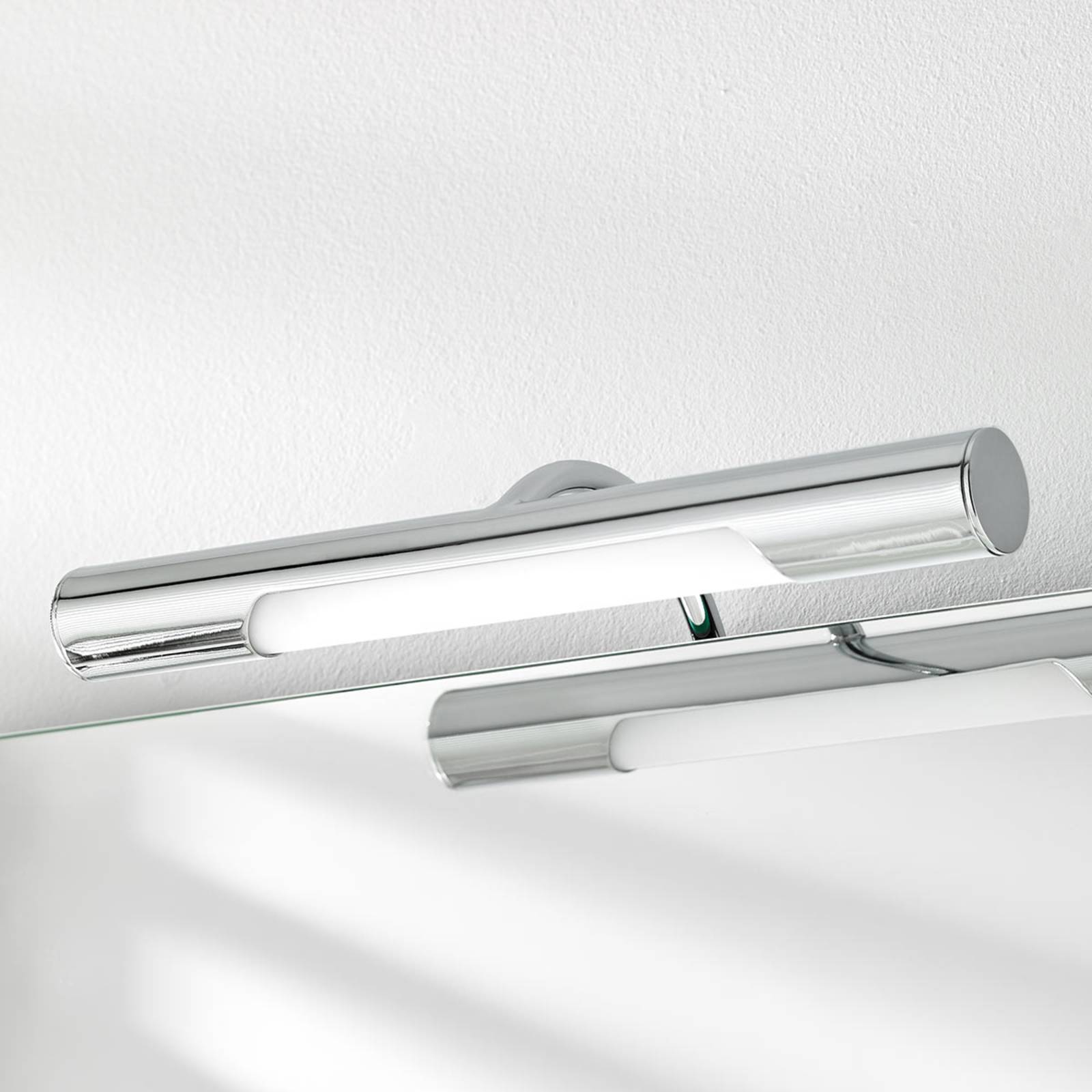 Zabezpečuje to správne svetlo nakúpeľňovom zrkadle – zrkadlové LED svietidlo Andrea Model Andrea je navrhnutý na každodennú úlohu, ktorá spočíva v optimálnom osvetlení v kúpeľni. Moderné zrkadlové LED svietidlo v tvare trubice poskytuje na kúpeľňovom zrkadle svojimi diódami LED vo farbe denného bieleho svetla dostatočný jas. Každodenné činnosti vykonávané pred zrkadlom sú tak zaručene jednoduchšie a dokončené v okamihu.