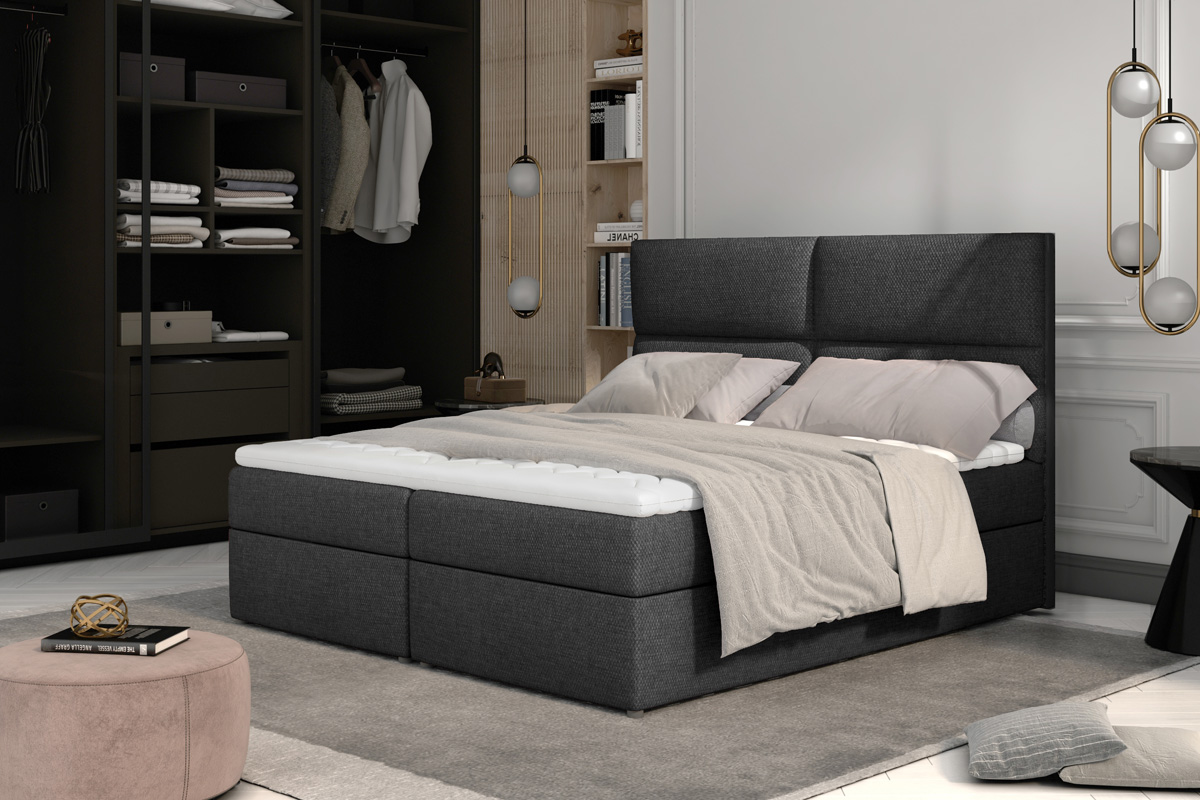 Manželská posteľ Angelina patrí k boxpringovým posteliam, ktoré zosobňujú eleganciu, luxus a pohodlný odpočinok v jednom. Je vyrobená z kvalitných materiálov, čo zaisťuje jej dlhodobé používanie. Poskytuje vysoký komfort, ktorý ocení aj náročnejší zákazník. Táto moderná boxpringová posteľ sa stane neoddeliteľnou súčasťou vášho domova.V spodnej časti postele Angelina sa nachádzajú 2 priestranné úložné priestory. Nad úložným priestorom je zabudovaný matrac, ktorý je vyplnený bonellovými pružinami v spojení s PUR penou o hustote T-25. Na ňom sa nachádza TOPPER – vrchný krycí matrac. Je vyplnený kvalitnou PUR penou. Topper eliminuje medzeru medzi matracmi a vytvára tak hladký povrch na spanie. Vysoké čelo postele slúži ako mäkká opierka hlavy. Plní nie len estetickú funkciu, ale tiež chráni stenu pred oderom. Manželská posteľ Angelina je čalúnená pevnou a kvalitnou poťahovou látkou Inari 96. Rozmery postele (š,v,h): 145 x 124 x 210 cm. Výška spacej plochy: 54 cm. Výška nožičiek: 3 cm. Spacia plocha: 140 x 200 cm. Výška matraca: 15 cm. Výška toppera: 4 cm. Ďalšie charakteristiky:Tvrdosť matraca – H3Jednostranný matracHypoalergénny poťahPoťah je snímateľný (na zips) – možnosť prať na 40°CV našej ponuke nájdete aj ďalšie prevedenia tejto štýlovej postele.Dodávame v demontovanom stave.
