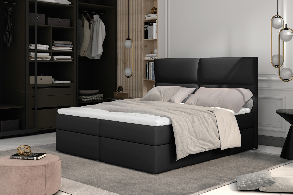 Manželská posteľ Angelina patrí k boxpringovým posteliam, ktoré zosobňujú eleganciu, luxus a pohodlný odpočinok v jednom. Je vyrobená z kvalitných materiálov, čo zaisťuje jej dlhodobé používanie. Poskytuje vysoký komfort, ktorý ocení aj náročnejší zákazník. Táto moderná boxpringová posteľ sa stane neoddeliteľnou súčasťou vášho domova.V spodnej časti postele Angelina sa nachádzajú 2 priestranné úložné priestory. Nad úložným priestorom je zabudovaný matrac, ktorý je vyplnený bonellovými pružinami v spojení s PUR penou o hustote T-25. Na ňom sa nachádza TOPPER – vrchný krycí matrac. Je vyplnený kvalitnou PUR penou. Topper eliminuje medzeru medzi matracmi a vytvára tak hladký povrch na spanie. Vysoké čelo postele slúži ako mäkká opierka hlavy. Plní nie len estetickú funkciu, ale tiež chráni stenu pred oderom. Manželská posteľ Angelina je čalúnená pevnou a kvalitnou ekokožou Soft 11.  Rozmery postele (š,v,h): 145 x 124 x 210 cm. Výška spacej plochy: 54 cm. Výška nožičiek: 3 cm. Spacia plocha: 140 x 200 cm. Výška matraca: 15 cm. Výška toppera: 4 cm. Ďalšie charakteristiky:Tvrdosť matraca – H3Jednostranný matracHypoalergénny poťahPoťah je snímateľný (na zips) – možnosť prať na 40°CV našej ponuke nájdete aj ďalšie prevedenia tejto štýlovej postele.Dodávame v demontovanom stave.
