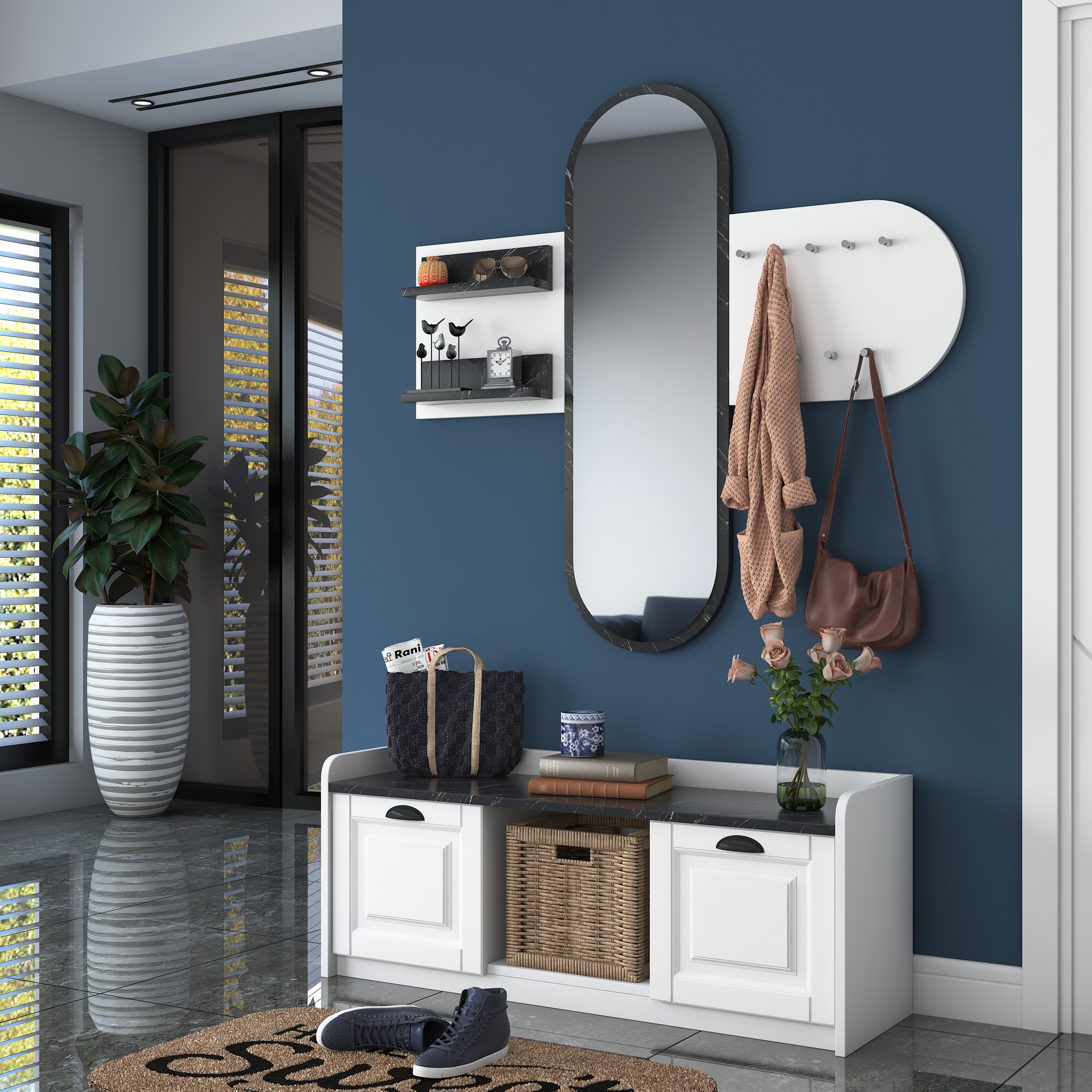 ANTHONY predsieňová stena so zrkadlom, biela/mramor