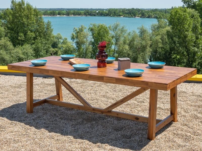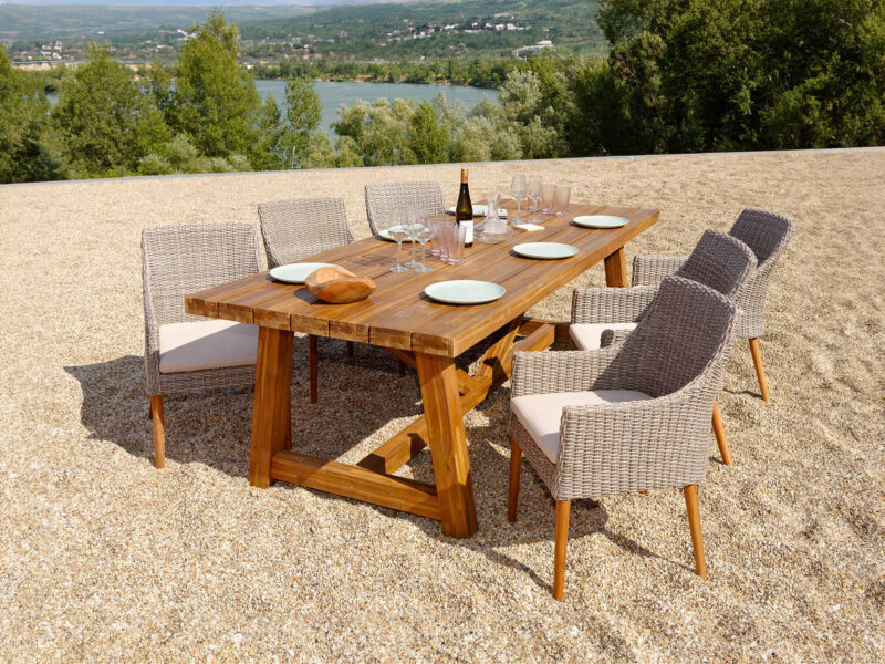 Stolová súprava Antigua 2022 Faro grey-wash z akáciového dreva pre 6 osôb.