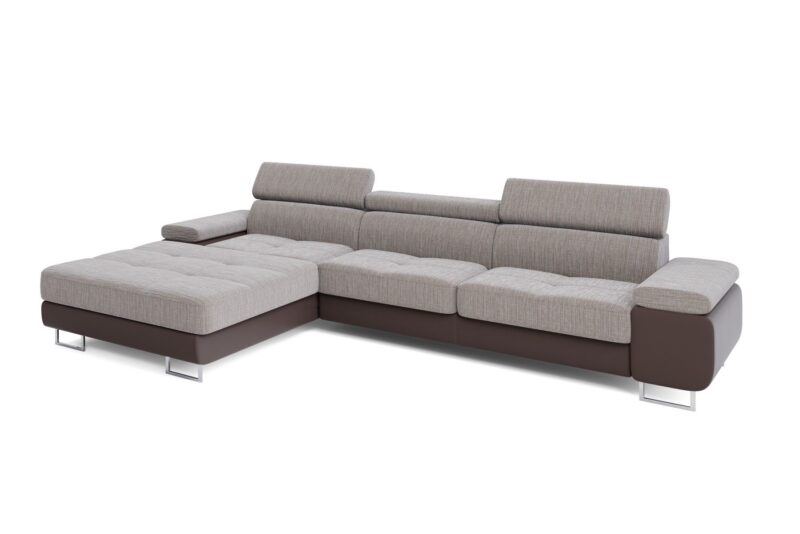 Očakávate od rohovej sedačky vo svojej obývačke maximálny komfort? Poobzerajte sa po rohovej sedačke ANTONIO MINI s polohovateľnými opierkami hlavy v poťahovom prevedení KORNET 4/DOLARO 33 v ľavom rohu.Precízne prešívanie sedadla, elegantný tvar a nohy zaručia moderný dizajn vo vašej obývačke. Sedačka je vybavená polohovateľnými opierkami hlavy, čo znamená, že bez ohľadu na to, kto tento nábytok používa, prispôsobí si výšku operadla svojim potrebám.Rohová sedačka je vyrobená z vysoko elastickej peny T30 (stredná tvrdosť) a vlnovcovej pružiny. Pena zaručuje väčšiu pružnosť a vyznačuje sa dlhšou životnosťou. Vaša rohová sedačka tak bude po rokoch rovnako pohodlná ako v deň kúpy.Poťahová látka KORNET je melírovaná poťahová látka, ktorá vzniká prepletením hrubých a tenkých nití v rôznych odtieňoch, tvorená sú zo 100% polyesteru. Vlákna sú výrazné, na dotyk mäkké a príjemné. Táto látka je odolná voči nečistotám a dostatočne pevná. Ekokoža DOLARO je látka, ktorá imituje prírodnú kožu. Je vyrobená zo zmesi syntetických látok. Koženka je na povrchu jemná a hladká. Je vystužená špeciálnou sieťovinou, ktorá bráni roztrhnutiu a zabezpečuje elasticitu.Prevedenie sedačky:3 nastaviteľné opierky hlavyEfektívny a jednoduchý rozklad vďaka funkcii DelfinRám je vyrobený na 19mm drevotrieskovom ráme, borovicové drevoVoľne stojaci model – má čalúnenú zadnú časťPriestranný úložný priestor v otomanePoniklované nohyRozmery sedačky:šírka: 275 cmdĺžka: 200 cmvýška: 88 cmspacia plocha: 210×130 cmšírka sedadla: 144 cmšírka bokov: 30 cmdĺžka bokov: 90 cmcelková dĺžka otomanu: 200 cmvýška sedadla: 42 cmvýška operadla bez záhlavníkov: 56 cmvýška bokov: 59 cmhĺbka sedadla: 58 cmhĺbka sedadla otomanu: 159 cmvýška nožičiek: 9cmDodávame v demonte.Farebné prevedenie sa môže líšiť v závislosti od nastavenia Vášho monitora.