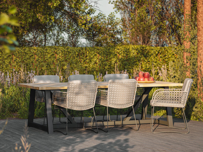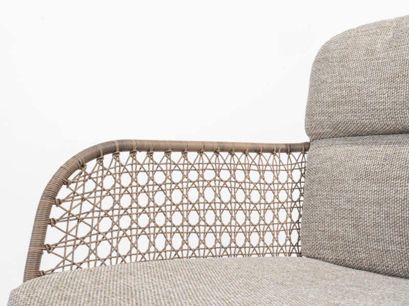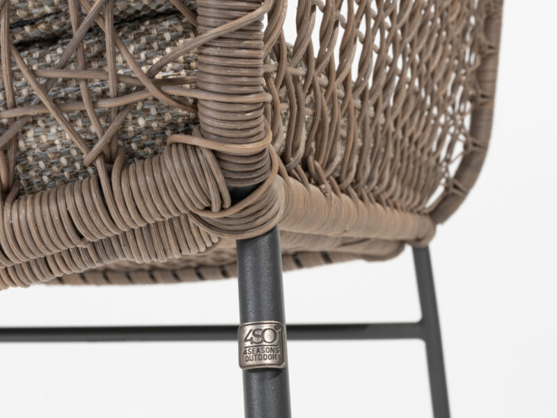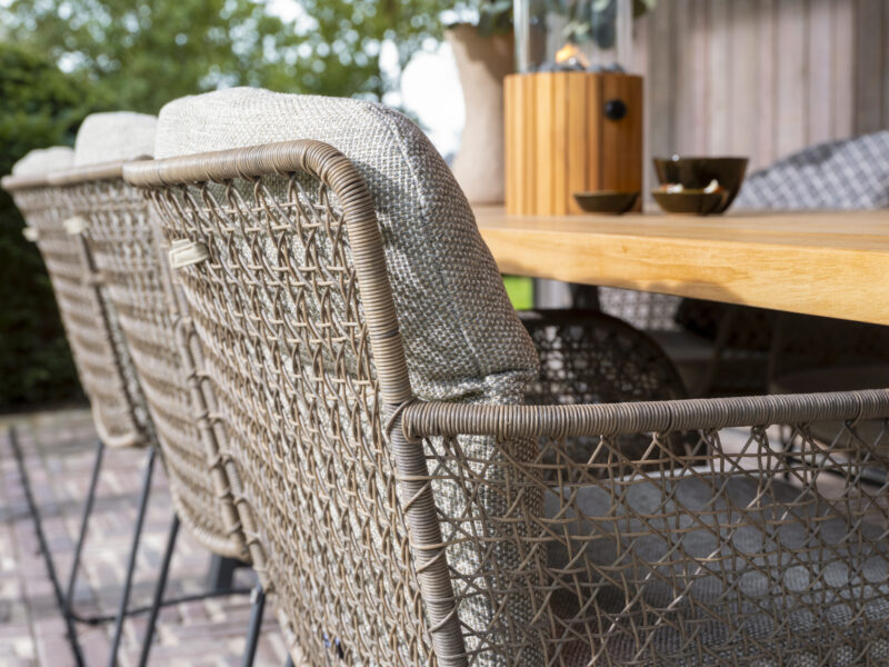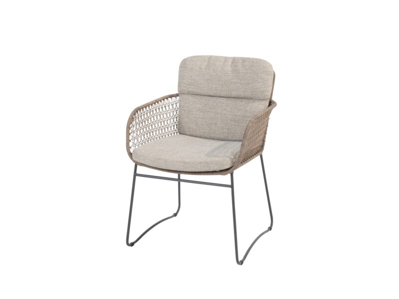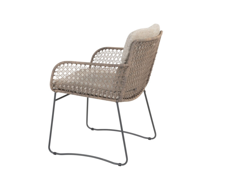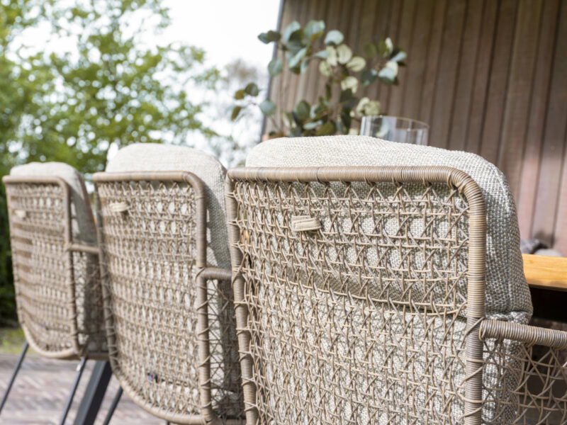 Elegantná jedálenská stolička Aprilla v jemných pudrových farbách vypletaná Hularo výpletom je navrhnutá v decentnom dobre kombinovateľnom dizajne.