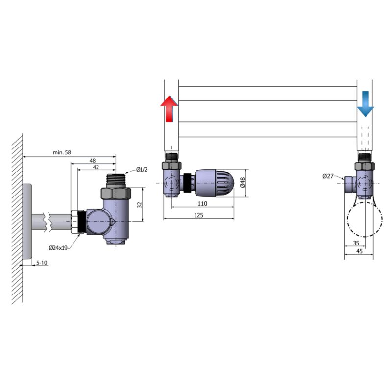 Ručný ventil: Ovládanie regulácie teploty je manuálne. Prívod teplej vody je možné pripojiť na ľavú / pravú stranu ventilu bez obmedzenia.Ventil s termostatickou hlavicou: Integrovaný termostat udržuje nastavenú teplotu okolia. Termostatická hlavica musí byť v mieste prívodu teplej vody (mimo MONO ONE).