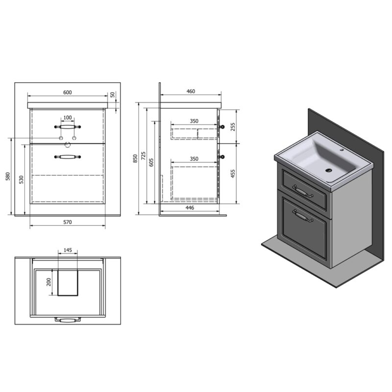 Domovská stránka » Katalóg » AQUALINE – FAVOLO umývadlová skrinka 57×72,5×44,6cm, biela mat FV260