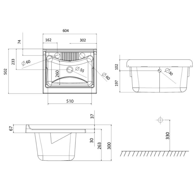 AQUALINE – Plastová výlevka so skrinkou 60×50 cm, vrátane sifónu PI6050-01