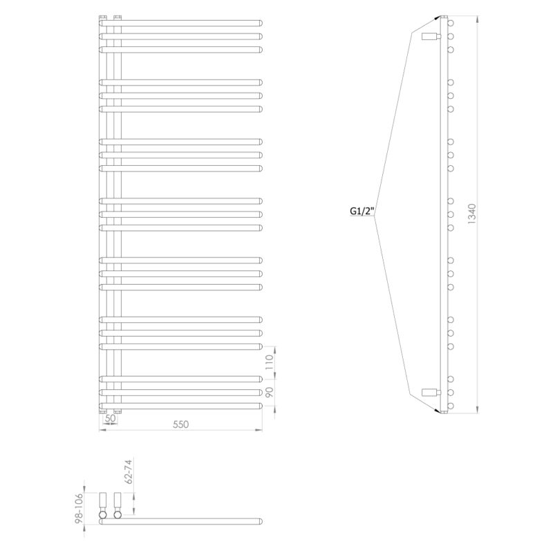 AQUALINE – POSEIDON vykurovacie teleso 550×1340, biela PS513