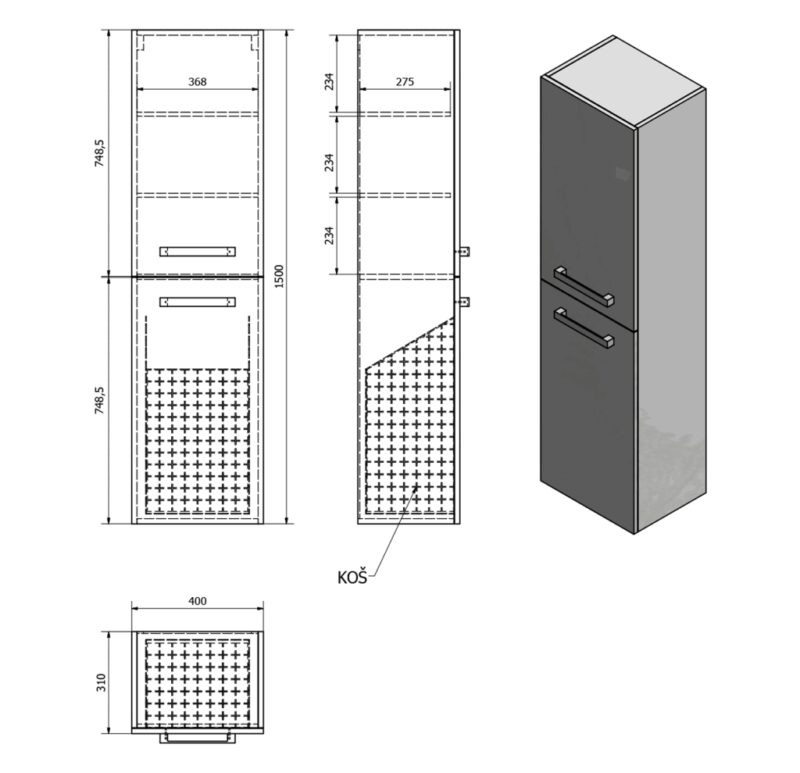 Domovská stránka » Katalóg » AQUALINE – VEGA Skrinka vysoká s košom, 40x150x31cm, biela VG160