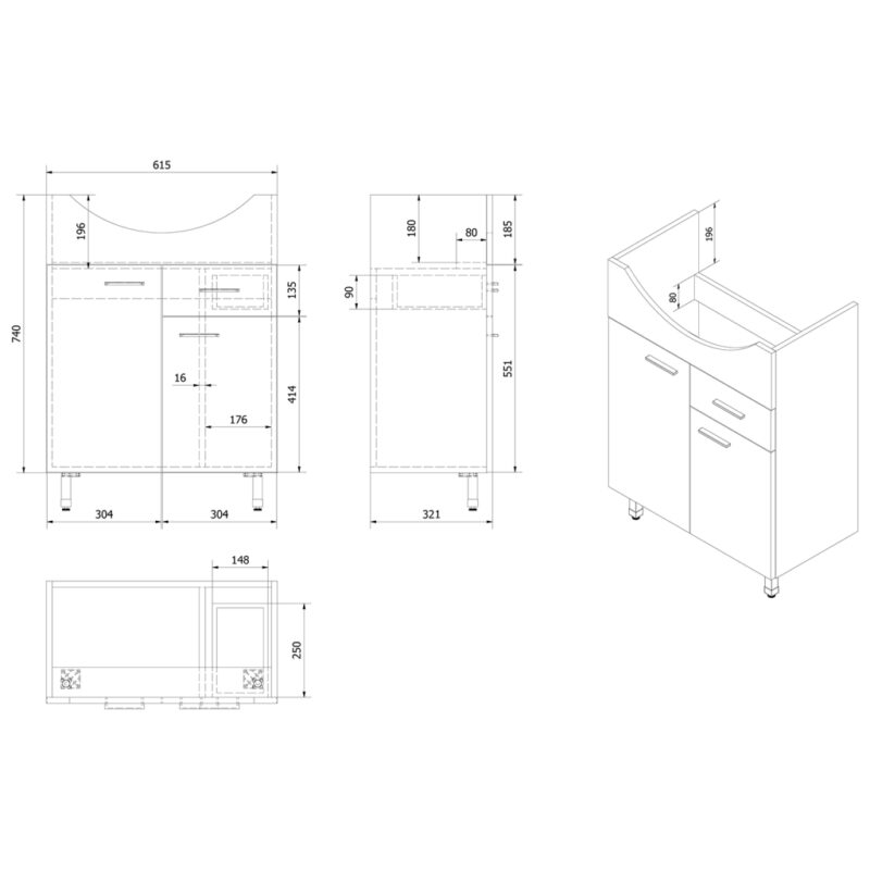 Domovská stránka » Katalóg » AQUALINE – ZOJA umývadlová skrinka 61,5x74x32cm, 2x dvierka, 1x zásuvka, dub platin 51165