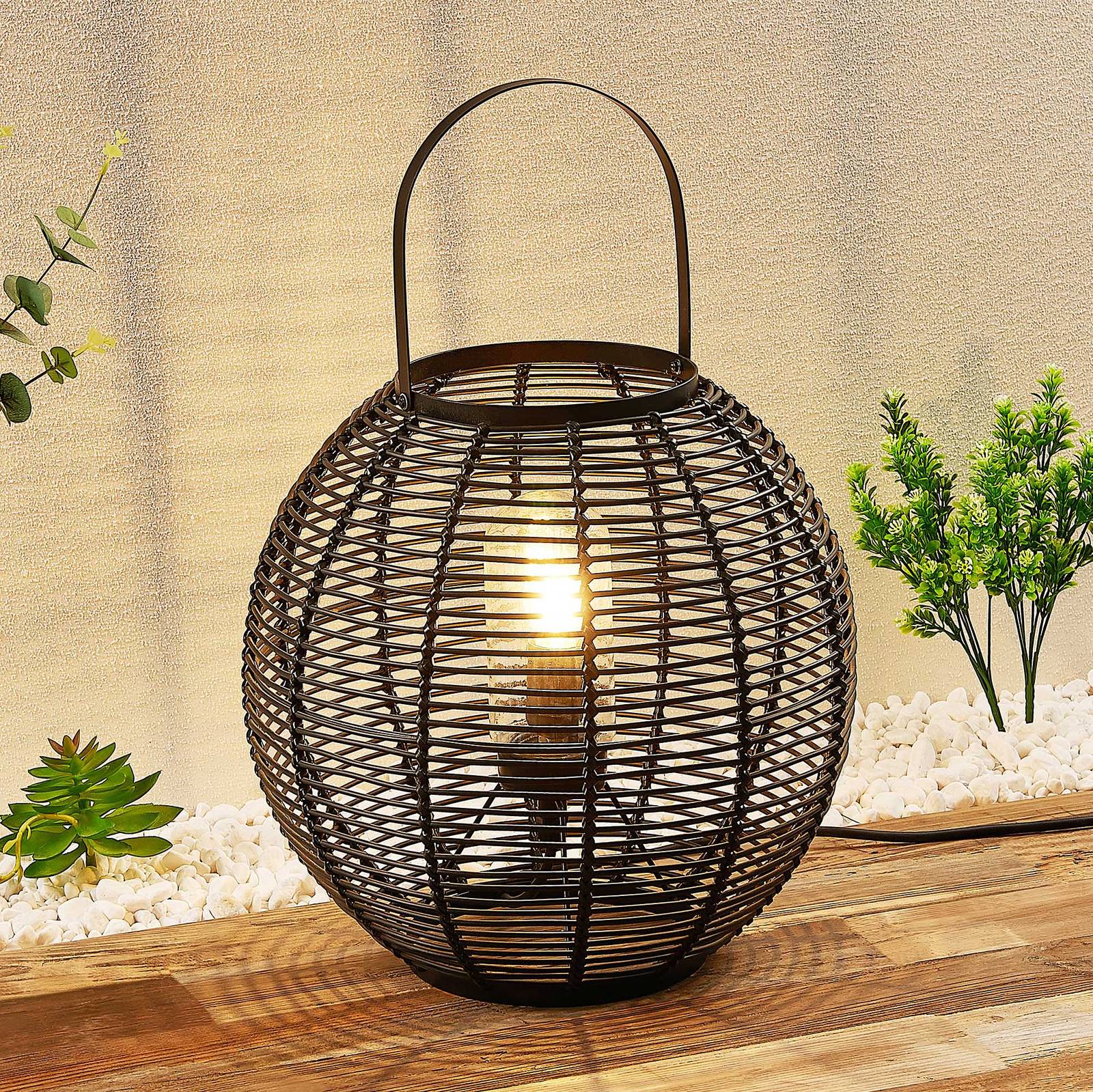 Úžasná atmosféra vo vonkajšom prostredí vďaka stolnej lampe Feysal Stolová lampa Feysal sa skladá z okrúhleho kovového svietidla. Lampa má navyše praktické držadlo, aby si dokázala rýchlo a ľahko nájsť nové miesto. Kovové vzpery sú pripevnené vertikálne a horizontálne, čím vytvárajú nádherný vzor. Svetlo svieti zvnútra proti kovu, takže vzniká úžasná súhra svetla a tieňa. Vďaka triede ochrany IP44 je možné svietidlo použiť aj vonku. Lampa je chránená aj skleneným krytom. Svetelný zdroj nie je súčasťou dodávky, ale vhodné príklady nájdete v príslušenstve.