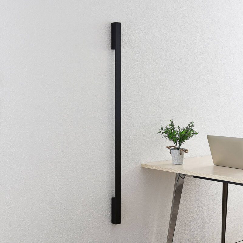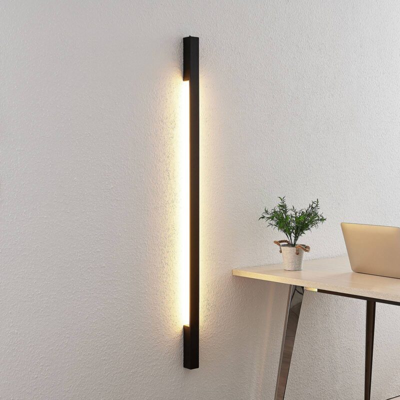 Štýlové LED nástenné svietidlo Ivano vyrobené z hliníka Príležitostné LED nástenné svietidlo Ivano zaujme štíhlym dizajnom a jemnou čiernou farbou. Skladá sa z dlhej vzpery, ktorá je vertikálne pripevnená k dvom nástenným konzolám. Vstavané LED diódy vytvárajú fascinujúcu hru svetla na zadnej strane vzpery tak, že premietajú svetlo na stenu. Táto hra svetla obklopuje lampu a dáva jej vyniknúť od steny. Nástenné svetlo Ivano LED je ideálne na osvetlenie chodby, pretože jeho kompaktný vzhľad ho šetrí priestorom ako rozsiahle nástenné svetlo. Moderný dizajn je možné ľahko integrovať do najrôznejších štýlov a radov iného nábytku.