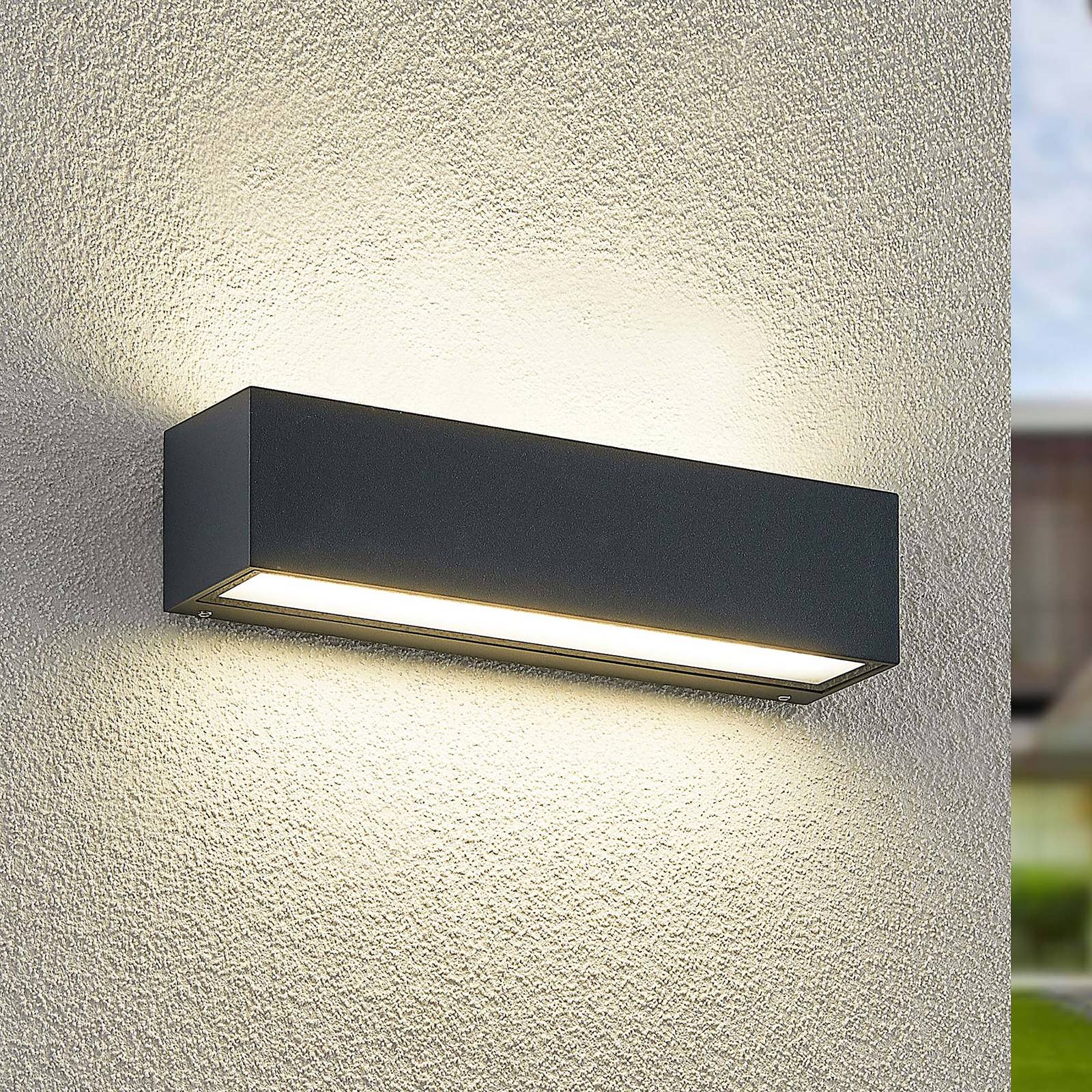 Vonkajšie LED nástenné svietidlo Lengo s dvojitým vyžarovaním svetla Vonkajšie LED nástenné svietidlo Lengo bolo vyrobené lisovaním hliníka a zaujme svojím čistým tvarom. Priamočiary dizajn v kombinácii s grafitovo šedou povrchovou úpravou dodáva tomuto svietidlu moderný vzhľad, ktorý vyzerá štýlovo a príjemne na každej stene domu. Svetlo sa vyžaruje smerom nahor aj nadol, čím vytvára krásne efekty na stene domu. Okrem toho je možné pred montážou nastaviť farbu svetla na teplú bielu alebo univerzálnu bielu. Toto svietidlo je preto vhodné nielen pre súkromné, ale aj pre komerčné použitie.