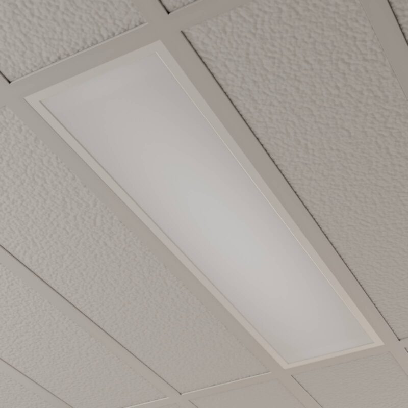 Podlhovastý, univerzálny biely LED panel Nesley s bielym okolím na zabudovanie do mriežkového stropu – vhodný pre VDU pracoviská. Tento LED panel je praktickým svetelným zdrojom na mnohé účely. Je veľmi praktickým všestranným riešením, najmä v kancelárskom prostredí alebo pre komerčné priestory, pretože je určený na zabudovanie do mriežkových stropov vďaka svojmu hranatému a podlhovastému tvaru a zodpovedajúcim bočným rozmerom. Vďaka svojej vysokej svietivosti poskytuje vložený panel LED dobré osvetlenie miestnosti a je tiež efektívnym osvetľovacím prvkom. – Vhodné pre pracovné stanice VDU – na vloženie do mriežkových stropov – UGR<19 - Trieda odolnosti proti nárazu IK06