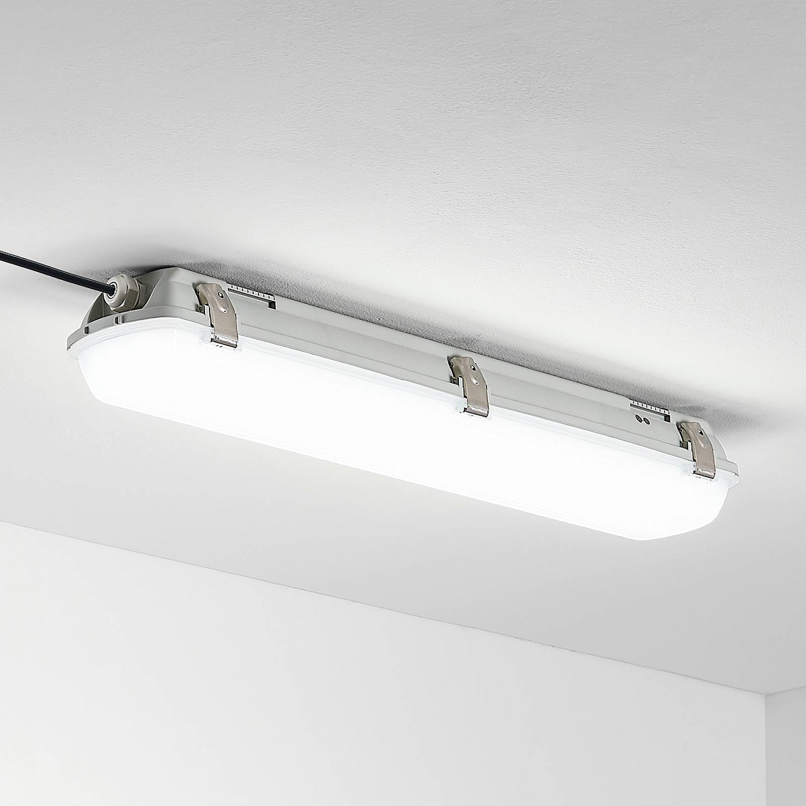 Rao LED svietidlo s difúzorom na povrchovú montáž na použitie vo vlhkých priestoroch, IP65, voliteľná farba svetla Toto povrchové difúzne svietidlo LED je skutočným prínosom, pokiaľ ide o jasné osvetlenie, najmä v komerčných priestoroch alebo vo vlhkých miestnostiach okolo domu a na dvore, napríklad v garáži alebo v pivnici. Vďaka vysokému stupňu ochrany môžu nečistoty a vlhkosť difúzne svietidlo len ťažko poškodiť, a preto je vhodné aj do miestností, kde môže byť vlhkosť vzduchu niekedy vyššia. LED diódy sú mimoriadne účinné a poskytujú primeraný jas pri pomerne nízkej spotrebe energie. Ich svetlo nebliká a pred inštaláciou si môžete vybrať z troch farieb svetla, ktoré sa dajú zvoliť pomocou integrovaného prepínača DIP. Vďaka vysokej odolnosti voči nárazom je Rao mimoriadne robustné svietidlo. – Možnosť priechodného zapojenia – Stupeň odolnosti proti nárazu IK08 – SDCM < 5