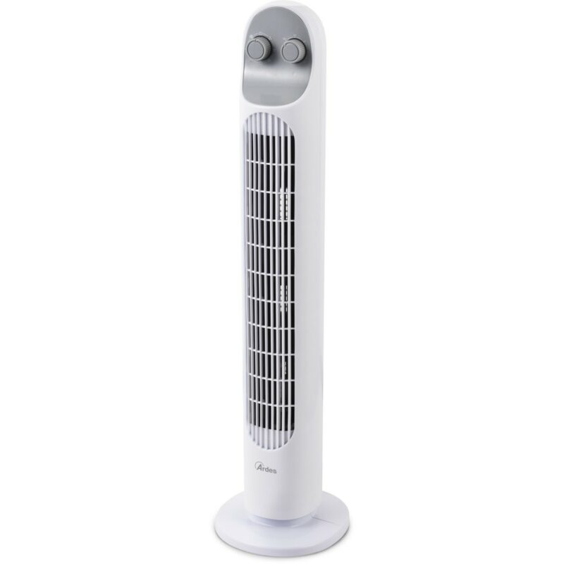 Stĺpový ventilátor od výrobcu Ardes sa skvele hodí do horúcich letných dní. Praktická výška je 81 cm. Disponuje 3 rýchlosťami a automatickou osciláciou. Má funkciu časovača na 120 minút. Doplnený držadlom pre ľahkú manipuláciu s ním. Prístroj je v bielej prevedení.
