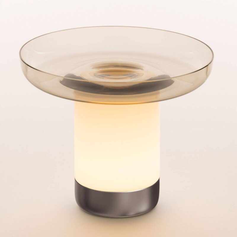 Prenosná stolová LED lampa Bontà so sklenenou miskou a posuvným stmievačom Prenosnú stolovú lampu Bontà vytvorili dizajnéri Attila Veress a Davide Oldani v spolupráci s talianskym výrobcom osvetlenia Artemide. Vďaka svojej funkčnosti sa hodí najmä na použitie v reštauráciách, hoteloch alebo baroch. Svietidlo je však skutočným všestranným talentom aj v súkromnej sfére a hodí sa napríklad na servírovanie občerstvenia. Stolná lampa je vyrobená zo štruktúrovaného matného skla a svojím teplým svetlom kúpe okolie v uvoľnenej atmosfére. Na hornej strane sa nachádza výklenok, do ktorého sa vkladá sklenená miska. Hostia v nej môžu konzumovať potraviny, ako sú sladkosti, chlieb alebo ovocie. Keďže sklenená miska aj lampa sú vyrobené z ručne vyrábaného skla, každý prvok stolovej lampy je jedinečný. Vďaka batériovej prevádzke nie je lampa viazaná na konkrétne miesto a môže sa používať kdekoľvek. S plne nabitou batériou poskytuje až 32 hodín svetla a pomocou externého kábla USB-C ju možno dobiť do 3 hodín. Vďaka integrovanému posuvnému stmievaču je možné meniť jas stolnej lampy v troch stupňoch a prispôsobiť ho individuálnym požiadavkám. Spoločnosť Artemide sa pri vývoji svojich svietidiel riadi rôznymi základnými princípmi a na svoje výrobky kladie tie najvyššie nároky. Svietidlá sú štýlovo navrhnuté a vybavené najmodernejšou osvetľovacou technológiou. Používajú sa aj vysokokvalitné a odolné materiály. Spoločnosť sa vždy zameriava na ľudí a ich potreby flexibilného a ideálneho svetla. Stolná lampa Bontà spája tieto vlastnosti a zaujme predovšetkým svojou vysokou funkčnosťou v oblasti gastronómie – 3-stupňový stmievač: 1. stupeň = 25 % intenzity svetla, 2. stupeň = 55 %, 3. stupeň = 100 % – Prevádzka až 32 h pri 25 % jase, 16 h pri 55 % a 8 h pri 100 % – Možnosť nabíjania prostredníctvom externého kábla USB-C