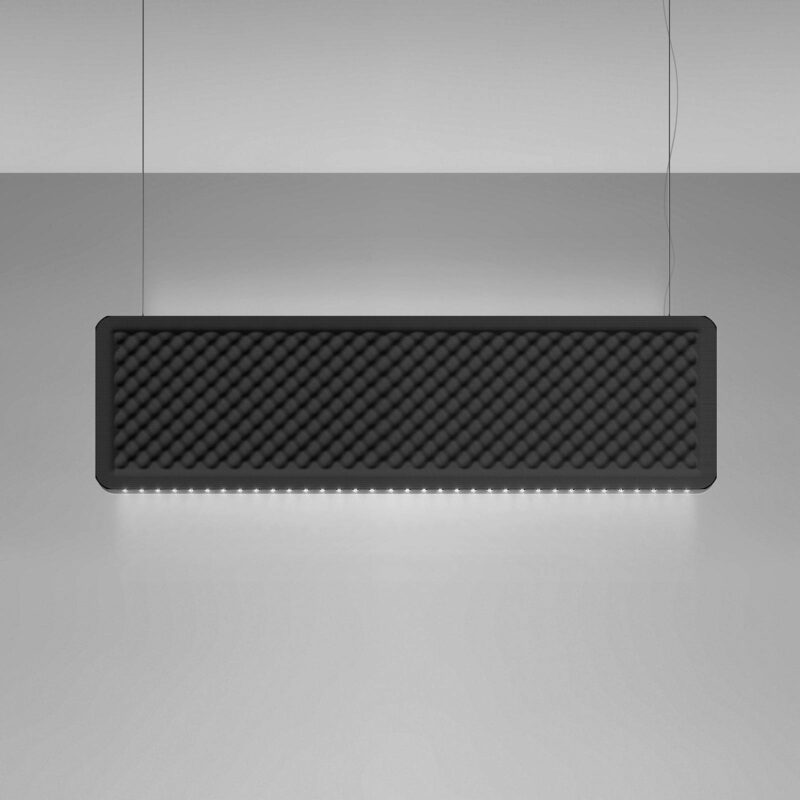 Zvislé, zvuk pohlcujúce závesné svietidlo Eggboard Baffle LED s horným a dolným svetlom Závesné svietidlo Eggboard Baffle so svetlom vyžarovaným smerom nahor aj nadol poskytuje komplexné osvetlenie okolia a pracovných úloh. Vďaka dobrej regulácii oslnenia (UGR < 19) sa závesné svietidlo môže používať aj nad počítačovými pracoviskami. Teleso v tvare vertikálneho obdĺžnika je navrhnuté s ohľadom na výber materiálov a štruktúru povrchu tak, aby sa optimalizovali zvukové frekvencie v miestnosti a podporila sa tak ideálna akustika pri rozhovore. Podľa potreby ho možno ovládať pomocou externých stmievačov DALI alebo prostredníctvom aplikácie Artemide (zadarmo pre iOS a Android) pomocou smartfónu alebo tabletu. Vďaka tomu je Eggboard Baffle ideálnou voľbou pre moderné pracovné prostredia, ako sú kancelárie a školiace miestnosti. Striešku so sieťovým káblom a prvky potrebné na ovládanie aplikáciou si môžete objednať samostatne prostredníctvom príslušenstva. Koncept série Eggboard pochádza od Progetto CMAn medzinárodne pôsobiaceho združenia mnohých architektov a inžinierov. Svietidlo vyrába v najvyššej kvalite taliansky výrobca Artemide. Spoločnosť Artemide sa so svojou filozofiou "Ľudské svetlo" zameriava na osvetlenie, ktoré je ideálne pre ľudí - tento princíp je v svietidle Eggboard obzvlášť zreteľný.