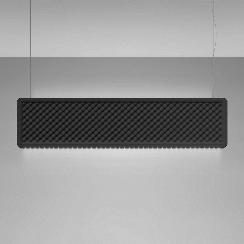 Závesné svietidlo Eggboard Baffle LED s priamym a nepriamym rozložením svetla vo vertikálnom usporiadaní Závesné svietidlo Eggboard LED bolo navrhnuté so zameraním nielen na svetlo, ale aj na akustický efekt. Materiál a povrchová štruktúra pohlcujú zvuk a sú navrhnuté presne tak, aby podporovali akustiku miestnosti optimalizovanú pre frekvencie ľudského hlasu. Závesné svietidlo je navrhnuté ako jednoduchý obdĺžnik s vertikálnou orientáciou a integrovanými LED diódami na úzkej hornej a dolnej strane. Eggboard Baffle poskytuje rozptýlené nepriame osvetlenie a priame, sústredené pracovné svetlo. Eggboard Baffle je možné ovládať externe pomocou DALI – alebo prostredníctvom bezplatnej aplikácie Artemide pre iOS a Android pomocou smartfónu alebo tabletu. Striešku so sieťovým káblom a prvky potrebné na ovládanie aplikáciou si môžete objednať samostatne prostredníctvom príslušenstva. Sériu Eggboard vyvinula spoločnosť Progetto CMR, medzinárodná spolupráca mnohých architektov a inžinierov. Vyrába ho taliansky výrobca Artemide. Eggboard jasne stelesňuje filozofiu spoločnosti vytvárať osvetlenie, ktoré je zamerané na ľudské potreby – Vhodné pre pracovné stanice VDU (UGR < 19)