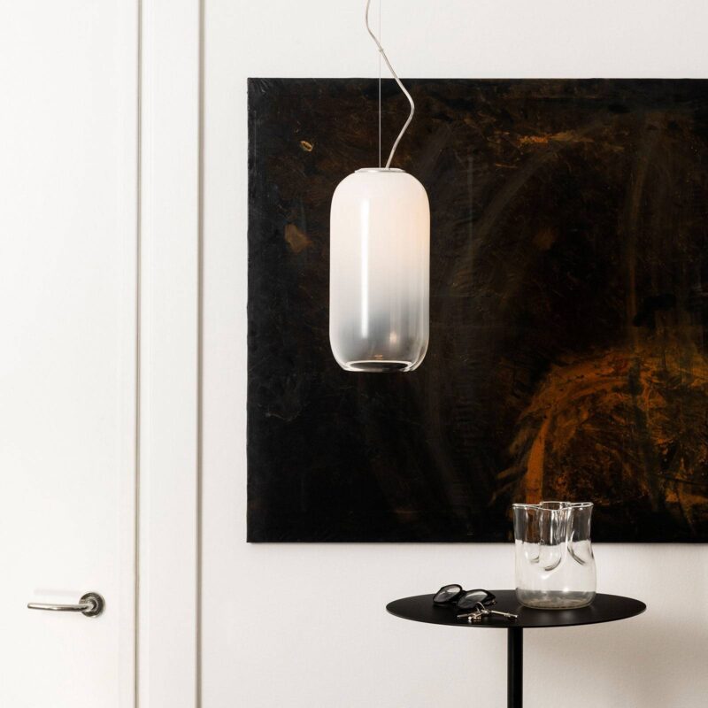 Fascinujúce spracovanie skla: závesné svietidlo Gople Mini – navrhnuté spoločnosťou BIG BIG, za ktorou stojí skupina Bjarke Ingels Group s kanceláriami v Kodani a New Yorku. Ide o skupinu architektov a dizajnérov, ktorí už dosiahli vynikajúce medzinárodné výsledky v oblasti urbanizmu a architektúry a získali si povesť tvorcov budov, ktoré majú inovatívny dizajn a zároveň sú realizované s ohľadom na náklady a zdroje. Jej zručnosti sa prejavujú aj vo farebnom, transparentnom dizajne závesného svietidla Gople, ktoré možno použiť ako ambientné alebo plošné osvetlenie v kombinácii so širokou škálou moderných štýlov nábytku. Dizajn vytvoril taliansky výrobca svietidiel Artemide s použitím skla spracovaného ručne tradičným benátskym spôsobom. Biele sklo sa mení na krištáľové a dodatočne sa farbí. Každé závesné svietidlo je preto jedinečné a vyžaruje fantastickú svetelnú atmosféru.