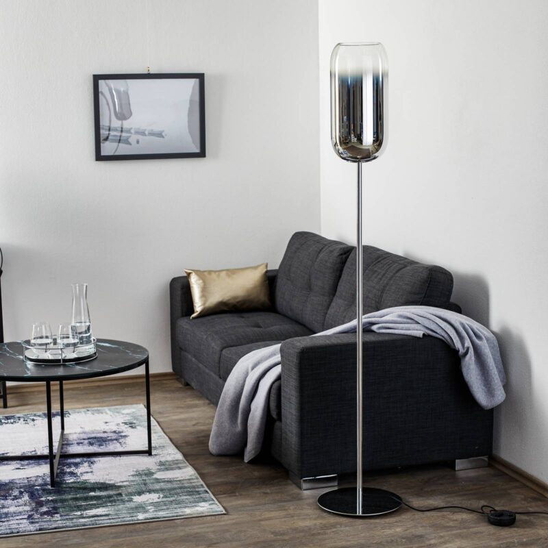 Dizajnová stojacia lampa Gople s dekoratívnym farebným transparentným skleneným tienidlomStojacia lampa Gople je osvetľovací objekt so štíhlym rámom, ktorého jednoduchosť ponecháva priestor pre mimoriadne esteticky navrhnuté sklenené tienidlo, ktoré je ručne vyrobené podľa starých benátskych techník v kombinácii s inovatívnou povrchovou úpravou.Fúkanie skla, následné zušľachtenie špeciálnym procesom vákuového nanášania kovu a záverečné nanesenie číreho laku robia každé svietidlo jedinečným, vyznačujúcim sa elegantným dizajnom a jedinečným svetelným vzorom navrhla BIG (Bjarke Ingels Group), dánska skupina architektov s inovatívnymi nápadmi – vyrába renomovaný výrobca svietidiel Artemide v Taliansku