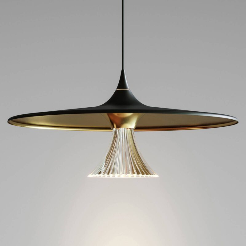 Závesné svietidlo Ipno LED v čiernej a zlatej farbe: harmonicky elegantný dizajn od Michele de Lucchi Toto dizajnové závesné svietidlo zaujme v každom modernom aj klasickom prostredí. Ipno je vybavené širokým tienidlom z hliníka, ktorého horná strana je lakovaná čiernou farbou, zatiaľ čo spodná strana je zlatej farby. Ako zdroj svetla slúžia teplé biele LED diódy, ktoré sú v strede v spodnej časti obklopené menším tienidlom z priehľadného plastu. Ten je vybavený pravidelnou štruktúrou drážok, ktorá zabezpečuje atraktívne lomy svetla, takže zlatý odtieň veľkého tienidla je účinne zdôraznený a dodáva svetlu teplý charakter. Závesné svietidlo Ipno LED vytvoril taliansky dizajnér a architekt Michele De Lucchi. Je medzinárodne známy svojimi návrhmi budov pre firmy a múzeá. Závesné svietidlo Ipno vyrába taliansky výrobca Artemide. Okrem vynikajúcej kvality si spoločnosť zakladá na filozofii optimálneho prispôsobenia svetelného efektu potrebám človeka.
