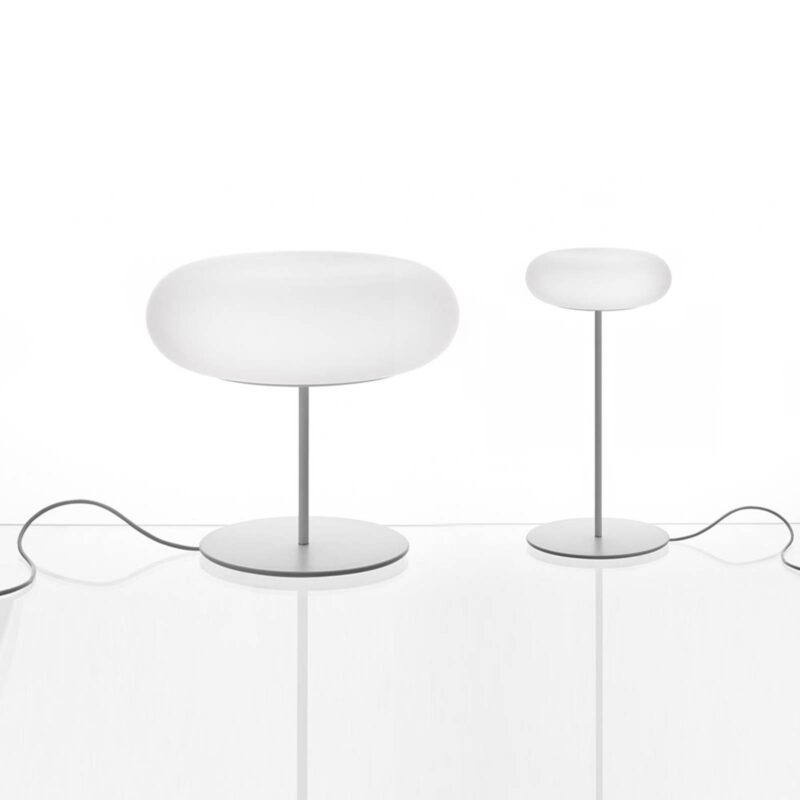 Očarujúca sklenená stolová lampa Itka so stojanom – dizajn Naoto Fukasawa Stolová lampa Itka je vybavená okrúhlou základnou doskou, z ktorej sa smerom hore tiahne štíhla tyč. Tróni na ňom obrazovka v tvare šošovky vyrobená z ručne fúkaného bieleho skla, ktorá vyžaruje svetlo z troch osvetľovacích prostriedkov, ktoré sa majú rovnomerne použiť všade naokolo. Itka je svetelný zdroj, ktorý je ideálny na zvýrazňujúce osvetlenie v obývacej izbe alebo v spálňach a je možné ho použiť aj na reštauračnom alebo kaviarenskom stole. Tento dekoratívny svetelný zdroj vytvoril Japonec Naoto Fukasawa, ktorý pracuje pre množstvo známych spoločností po celom svete. V spolupráci s talianskym výrobcom svetla Artemide vznikla stolná lampa Itka, ktorá sa vyrába v obvyklej vynikajúcej kvalite Artemide.