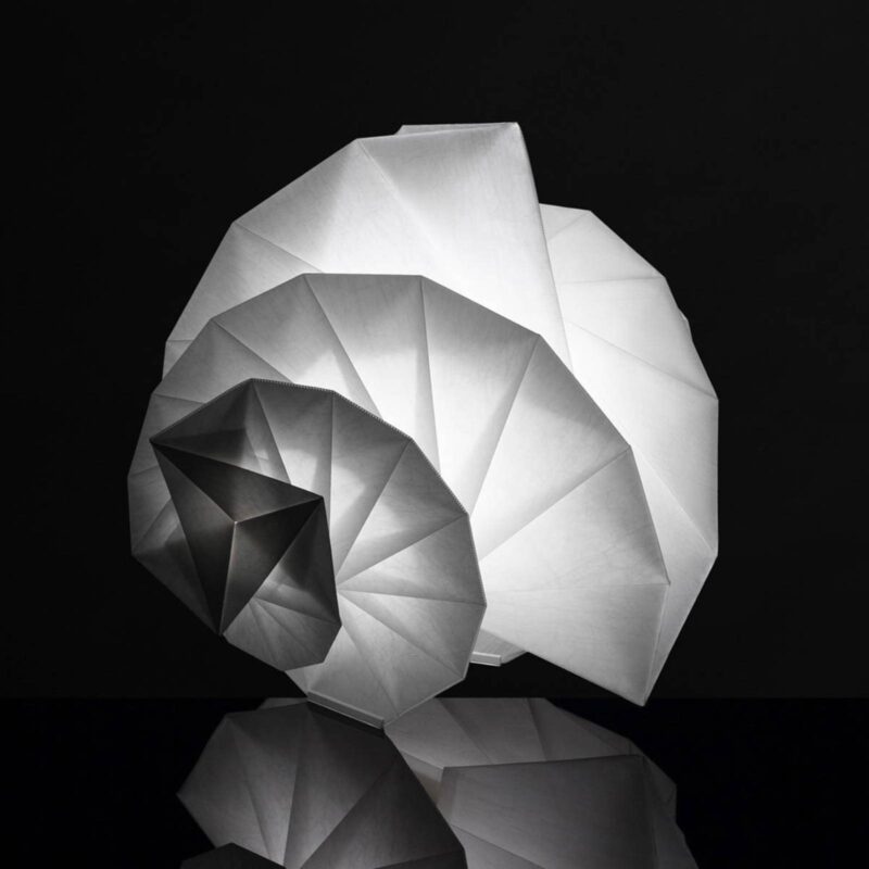 Dizajnová stolová lampa Mendori in-ei v geometrickom dizajne Japonský výraz „in-ei“ znamená zhruba tieň, tieňovanie alebo množstvo tieňov. Táto myšlienka charakterizuje vzhľad stolnej lampy Mendori LED, ktorá pozostáva zo zloženého tienidla vymodelovaného podľa ulity slimáka. Jednotlivé časti vytvárajú trojrozmernú štruktúru a sú atmosféricky zvýraznené svetlom a tieňom vďaka teplému bielemu svetelnému zdroju umiestnenému vo vnútri. Charakteristická technika skladania a povrchová úprava recyklovaného materiálu dodávajú lampe dokonalú tvarovú stálosť aj bez rámu. Keď stolnú lampu Mendori nepotrebujete, môžete ju jednoducho zložiť a uskladniť, aby ste ušetrili miesto. Koncept a technológia jedinečnej stolnej lampy Mendori siahajú do dizajnérskeho štúdia japonského Isseyho Miyakeho. Na navrhovanie telies na základe matematických a geometrických princípov sa používa program, ktorý vyvinul Jun Mitani. V spolupráci so spoločnosťou Artemide vznikla stolová lampa Mendori, ktorá je symbiózou odborných znalostí v oblasti osvetľovacej techniky a inovatívneho prístupu k materiálu a dizajnu.