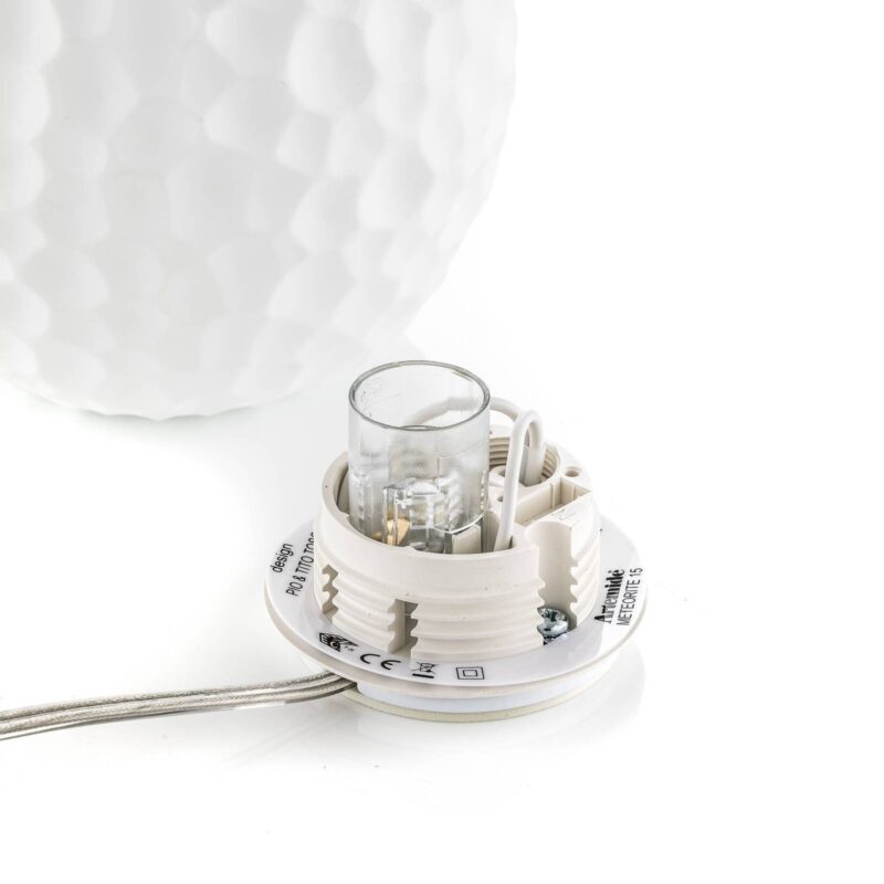 Malá dizajnová stolová lampa Meteorit – Ø 15 cm S touto stolovou lampou môžete nastaviť atmosférické akcenty kdekoľvek v obývacej izbe. Stolová lampa Meteorite na seba upozorňuje špeciálnou sklenenou štruktúrou a dosahuje veľmi atmosférický efekt z hľadiska optiky a osvetlenia. Dizajn pochádza od Pia a Tita Tosa, dvoch bratov narodených v Benátkach, ktorí si po štúdiu architektúry otvorili spoločné štúdio a odvtedy spolupracujú na stavebných projektoch v rôznych krajinách. So stolovou lampou Meteorite si spomenuli na tradičnú techniku spracovania benátskeho skla. Sklo sa najskôr ponorí do kyseliny a potom sa spracuje pieskom. Výsledná sklenená štruktúra zaisťuje jedinečný svetelný efekt. Stolná lampa Meteorite je vyrábaná známym talianskym výrobcom Artemide, ktorého vysoko kvalitné dizajnové žiarovky sa predávajú v 98 krajinách.