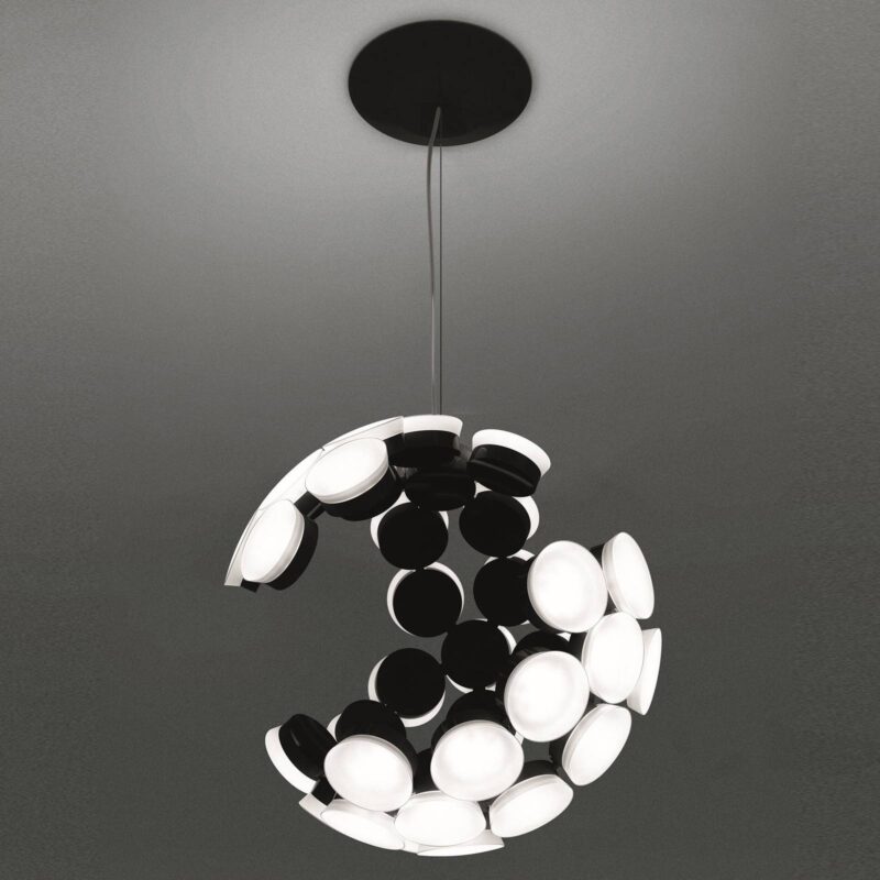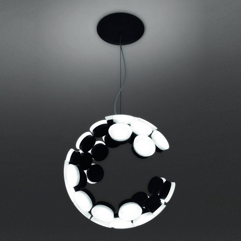 Dizajnové závesné svietidlo Scopas navrhnuté ako otvorená guľa – ovládateľné pomocou aplikácie Neúplná guľa tvorí tieň závesného svetla Scopas LED. Skladá sa z mnohých svetelných prvkov v tvare disku, ktoré sú vo vnútri čierne a vyžarujú svetlo cez matný plast na vonkajšej strane gule. Výsledkom je neobvyklý obraz a vzhľad, ktorý sa mení v závislosti od perspektívy. Scopas je možné prepínať a stmievať aj pomocou aplikácie Artemide(bezplatne k dispozícii pre iOS a Android ). – Technológia Bluetooth s nízkou spotrebou energie – Push dim je možné ovládať aj externe Závesné svietidlo Scopas navrhol škótsky produktový dizajnér Neil Poulton, ktorý za svoje výtvory získal množstvo medzinárodných ocenení vrátane ocenení Red Dot a IF. Od 90. rokov pracuje pre taliansku spoločnosť Artemide , ktorá vyrába závesné svetlá v obvyklej bezchybnej kvalite, ktorá charakterizuje výrobky výrobcu. V roku 2018 bola lampa Scopas zahrnutá do 1. stálej expozície V&A Dundee v Škótsku.