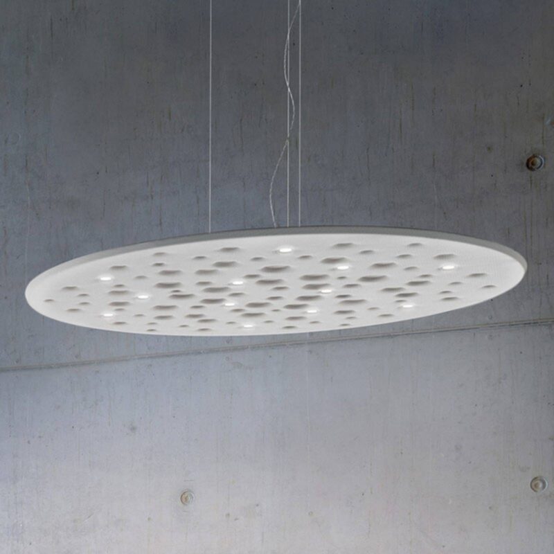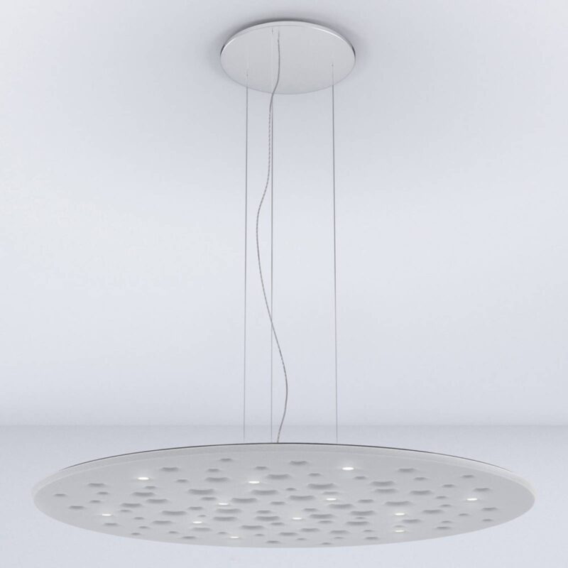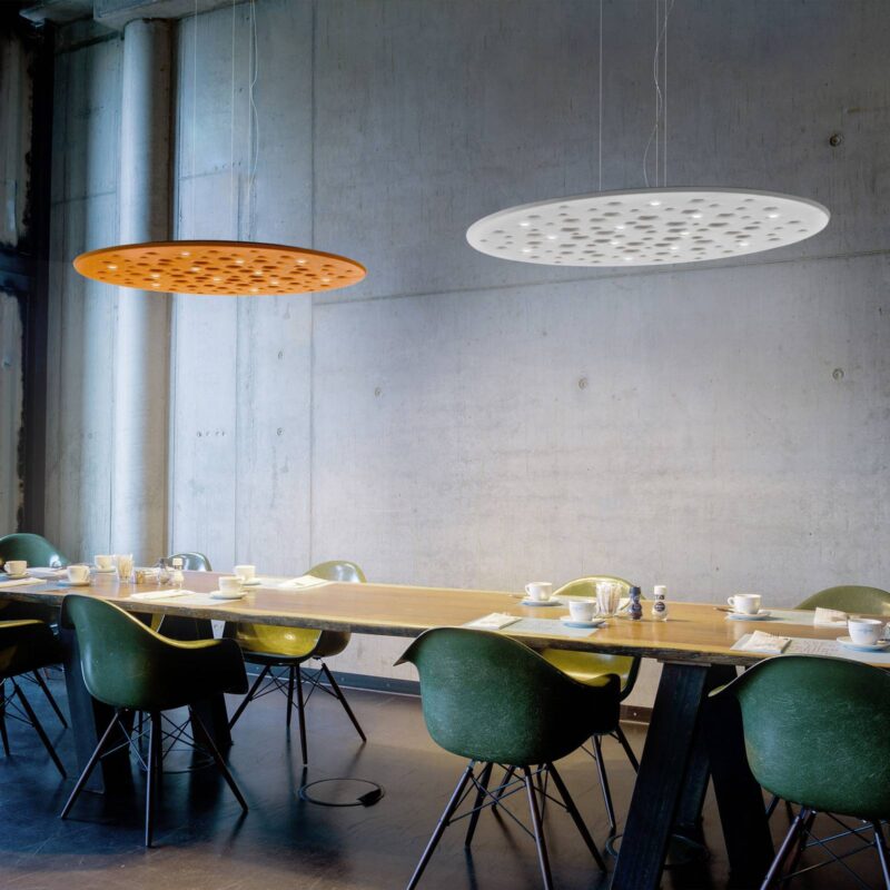 Priame a nepriame závesné svietidlo LED Silent Field 2.0 Toto závesné svietidlo Silent Field 2.0 s nepravidelnými okrúhlymi zárezmi, vďaka ktorým vyzerá ako kráter na povrchu nebeského telesa, je absolútnou pastvou pre oči aj po vypnutí. Po zapnutí vyžaruje priame aj nepriame svetlo. Závesné svietidlo je tiež vyrobené z materiálu pohlcujúceho zvuk. Ten bol vytvorený na základe frekvencie ľudského hlasu s cieľom podporiť čistú akustiku počas rozhovorov. Silent Field 2.0 harmonicky zapadá do najrôznejších štýlov bývania a je ideálne napríklad ako stolové osvetlenie – externe stmievateľné (push dim) Silent Field 2.0 navrhli Carlotta de Bevilacqua a Laura Pessoni pre talianskeho výrobcu dizajnového osvetlenia Artemide, ktorý je symbolom najvyššej kvality a svoje výrobky predáva v mnohých krajinách. Carlotta de Bevilacqua je dizajnérka, architektka, učiteľka a podnikateľka a intenzívne sa venuje výskumu v oblasti svetla. Navrhla mnoho ocenených výrobkov pre spoločnosti Artemide a Danese Milano, kde sa podieľa aj na riadení. Laura Pessoni, milánska produktová dizajnérka, svetelná a interiérová architektka, vyštudovala priemyselný dizajn na Milánskej polytechnike a od roku 2008 spolupracuje s Carlottou de Bevilacqua.
