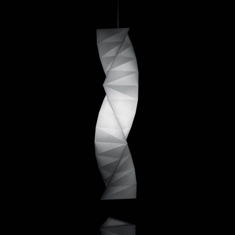 Dizajnové závesné svietidlo Tatsuno-Otoshigo zo série in-ei – skladaná štruktúra Závesné svietidlo Tatsuno-Otoshigo je umelecké svietidlo, ktorého dizajn siaha až k dizajnérskemu štúdiu Miyake. Issey Miyake a jeho výskumný a vývojový tím vytvorili svietidlo v roku 2010 v rámci projektu, ktorý bol vyvinutý pomocou počítačového programu založeného na 3D geometrii a matematike. japonský výraz „in-ei“ pre tieň, tieňovanie alebo bohatosť tieňa odkazuje na svetelný efekt série svietidiel, ktorý je charakteristický rôzne osvetlenými časťami konštrukcie. Závesné svietidlo Tatsuno-Otoshigo bolo vytvorené v spolupráci so spoločnosťou Artemide, čo predstavuje symbiózu technických znalostí v oblasti osvetlenia a inovatívneho prístupu k materiálom a dizajnu. Sochársky tvar vytvorený Miyakeho jedinečnou technikou skladania získava vďaka špeciálnej technike a dodatočnej povrchovej úprave optimálnu a dokonalú tvarovú stabilitu bez potreby ďalšieho rámu. Keď sa dáždnik nepoužíva, je možné ho dokonca zložiť na plocho, aby sa ušetril priestor pri skladovaní, a obnoviť jeho pôvodný tvar.