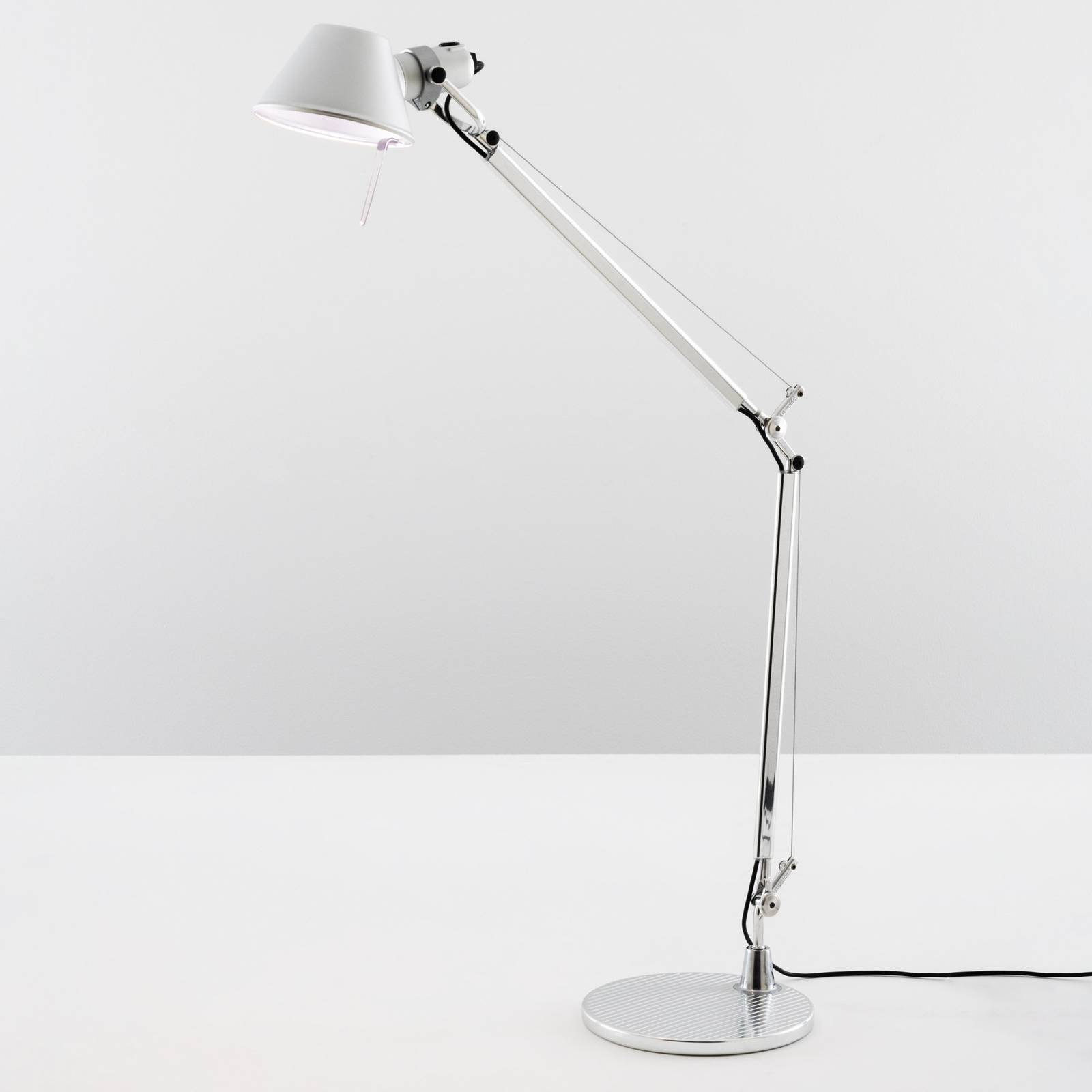 Artemide Tolomeo Pure Integralis – klasická stolová lampa s dezinfekčným svetelným efektom Stolová lampa Tolomeo je skutočnou klasikou. Pôvodný dizajn Micheleho De Lucchiho a Giancarla Fassinu z roku 1987 sa v priebehu rokov stával čoraz obľúbenejším, vždy sa ďalej vyvíjal a dodnes nestratil nič zo svojho pôvodného šarmu. Model Tolomeo Pure Integralis ponúka okrem estetiky nadčasového dizajnu a funkčnosti pohyblivých kĺbov so systémom vyvažovania pružín teraz aj špeciálny dezinfekčný účinok. Vďaka inovatívnej technológii Integralis® možno baktérie na osvetlenom povrchu účinne redukovať, a to len pomocou svetla