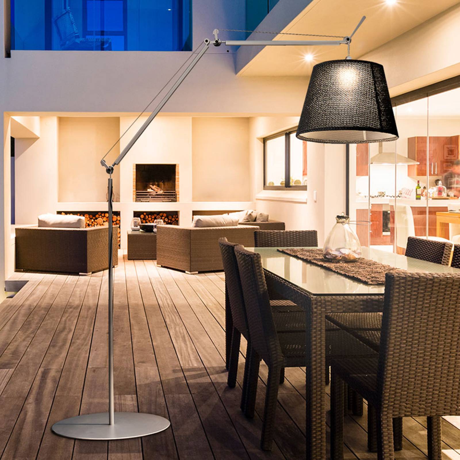 Vonkajšia dekoratívna lampa LED Tolomeo Paralume Outdoor Špičkový dizajn stojacej lampy Tolomeo Paralume Outdoor s dômyselným pružinovým vyvažovacím systémom je prácou vynálezcov stolovej lampy Tolomeo, ktorá sa medzičasom stala klasikou súčasných lámp, dvoch talianskych dizajnérov Michela De Lucchiho a Giancarla Fassina. De Lucchi a Fassina tak dopĺňajú kolekciu Tolomeo výrobcu osvetlenia Artemide o štýlový a veľmi funkčný zdroj svetla na balkón a terasu. Výška a prečnievanie telesa sa dá ľahko nastaviť a môžu sa vytvárať mnohé scenáre osvetlenia. Široké tienidlo pôsobí akoby bolo vyrobené z juty, ale v prípade tienidla ide o materiál Thuja, robustný, umývateľný plast, ktorý vyvinul Paola Lenti, ktorý je ideálny na použitie vonku.