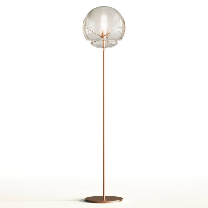 Stmievateľná stojacia lampa Vitruvio s tienidlom z fúkaného skla Hlavným znakom stojacej lampy Vitruvio je priehľadné tienidlo z fúkaného skla. Jeho vzhľad pripomína včelí úľ alebo kokón. Do hornej polovice tienidla boli vsadené horizontálne pruhy, vďaka ktorým sa zdroj svetla vo vnútri javí ako mierne rozmazaný. Zároveň zabezpečujú, aby svetlo vyžarovalo bez oslnenia a rovnomerne osvetľovalo svoje okolie. Ak chcete stojaciu lampu nainštalovať, najprv vložte LED žiarovku (pozri príslušenstvo), ktorá je obklopená tromi pohyblivými kovovými tyčami. Keď sa sklenené tienidlo umiestni na rám, uvedie sa do pohybu mechanizmus, ktorý vyrovná tyče a optimálne ich ukotví v tienidle. Tyče vyvažujú hmotnosť gule a zabezpečujú jej bezpečné uchytenie. Svetlo sa pohodlne ovláda pomocou priloženého nožného spínača. Ten umožňuje plynulé zapínanie a vypínanie a stmievanie stojacej lampy. Vitruvio je projektom dizajnérskej skupiny Atelier oï, ktorá sa zameriava na prácu s kvalitnými a udržateľnými materiálmi. Stojacia lampa spája tradičné hodnoty a osvedčené výrobné postupy, ako je umenie fúkania skla, s modernými víziami a technológiami. Predstavuje tak základné princípy spoločnosti Atelier oï a výrobcu svietidiel Artemide.