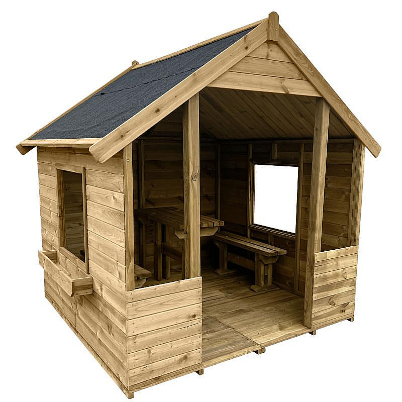 Drevený domček ALTA bude milovať každé dieťa az Vašej záhrady tak vytvoríte miesto nekončiacej zábavy pre Vaše deti. Drevina borovice, tlaková zelená impregnácia. Kombináciou fantázií detí a rodičov si vytvoríte vlastné vysnívané ihrisko na vlastnej záhrade. Každé dieťa si praje mať svoj vlastný domček na hranie. Zaobstarajte mu na Vašu záhradu tento úžasný domček, kde sa bude môcť hrať s kamarátmi. S touto hračkou sa Vaše dieťa nikdy nebude nudiť. Domček má modulárnu konštrukciu a väčšinu prvkov, ako steny, strecha, dvere, okná, podlahy, zábradlia sú rýchlo zostavené a pripravené na maľovanie. Inštalácia domčeka je vďaka pripraveným dielom jednoduchá a rýchla. Po dokončení montáže môžete domček ľubovoľne dotvárať a maľovať, zdobiť ho rozprávkovými vzormi alebo obľúbenou farbou vášho dieťaťa. Možnosť prispôsobiť vzhľad stavby individuálnym fantáziám a preferenciám dieťaťa je zárukou vytvorenia miesta na hranie priamo z jej snov.