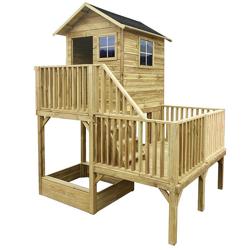 Drevený domček HANSON bude milovať každé dieťa az Vašej záhrady tak vytvoríte miesto nekončiacej zábavy pre Vaše deti. 3 úrovňový domček vyrobený z tlakovo impregnovanej borovice.