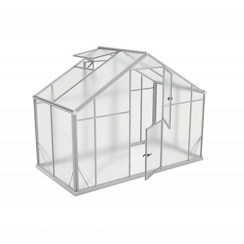Polykarbonátový skleník s hliníkovou konštrukciou. Náš polykarbonátový skleník je jednoduchá stavebnica pre milovníkov čerstvej zeleniny. Jednoduchá montáž, dômyselne vymyslené vetranie a pevnosť konštrukcie sú zárukou spokojnosti zákazníkov.