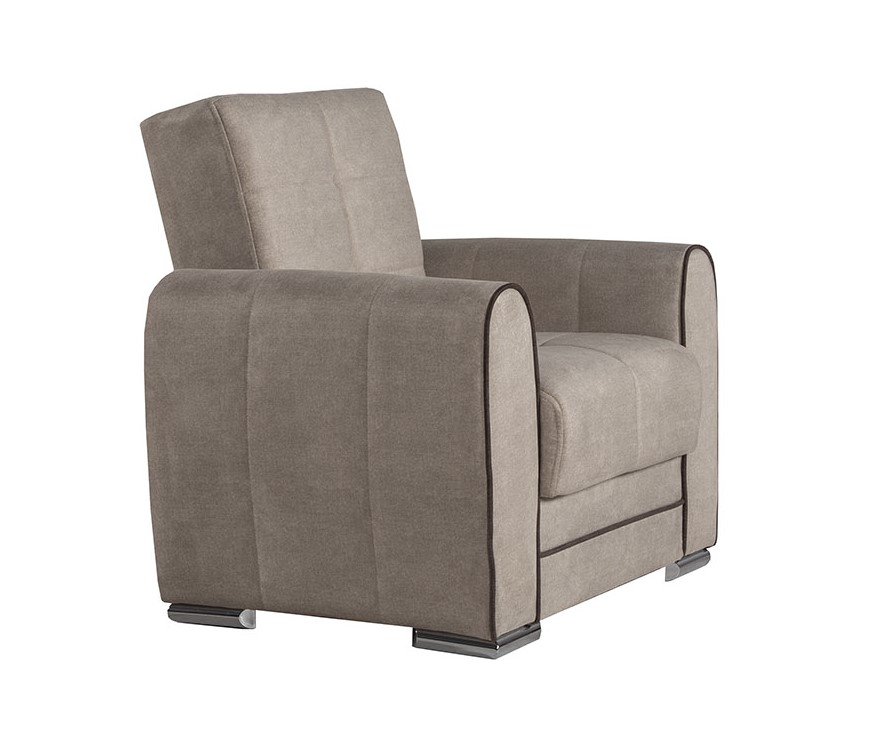 Pohodlné rozkladacie kreslo ASLAN s funkciou spania a úložným priestorom bude praktickým kúskom do každého interiéru. Kreslo je ideálne pre každodenný odpočinok. Za komfort sedenia a spania sú zodpovedné pružiny Bonnell a vysoko kvalitná PUR pena. ÚLOŽNÝ PRIESTOR pod sedákom poskytuje dostatok priestoru pre uskladnenie posteľnej bielizne či prikrývok. Kreslo je čalúnené kvalitnou poťahovou látkou v béžovej farbe a stojí na chrómových nožičkách.Špecifikácia:ložná plocha po rozložení: 115 x 58 cmcelkové rozmery: D:98 / Š:83 / V:91 cmDodávame v demonte.Ku kreslu je možné dokúpiť aj trojsedák/pohovku ASLAN.