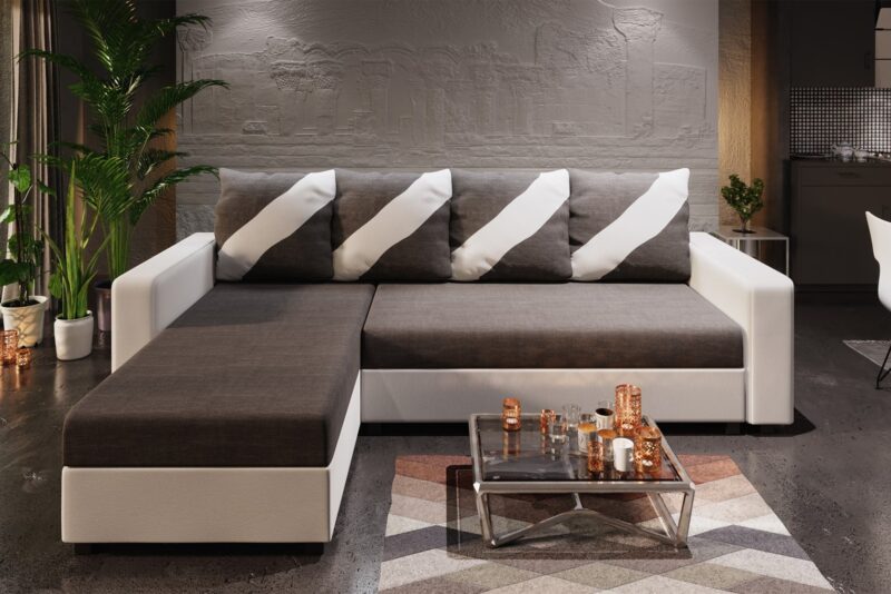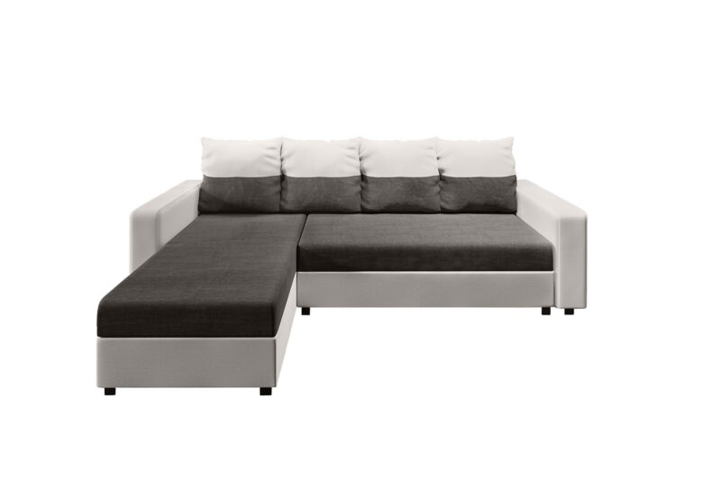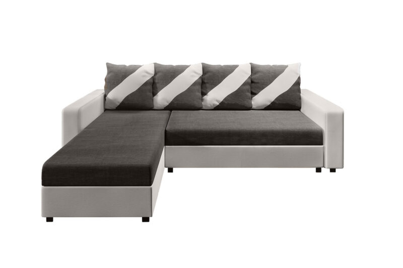 Moderná rozkladacia sedačka menších rozmerov ASTANIA L v poťahovom prevedení SAWANA 5/DOLARO 511 v ľavom rohu má operadlo tvorené štyrmi dvojfarebnými vankúšmi, ktoré majú z jednej strany vodorovné pruhy a zo strany druhej šikmé pruhy. Môžete si tak otočením vankúšov meniť vzhľad sedačky. Každý vankúš má praktické zapínanie na zips.Poťahová látka SAWANA je materiál s výzorom plátna, ktorý dá každému nábytku eleganciu a pôvab. Vyznačuje sa vysokou pevnosťou a pestrými farbami.Sivá ekokoža DOLARO je látka, ktorá imituje prírodnú kožu. Je vyrobená zo zmesi syntetických látok. Koženka je na povrchu jemná a hladká. Je vystužená špeciálnou sieťovinou, ktorá bráni roztrhnutiu a zabezpečuje elasticitu.Prevedenie sedačky:Rám z masívneho dreva a drevotrieskyRozklad so spacou plochou 130×200 cmÚložný priestor s rozmermi 127x55x20 cmRozmery sedačky:šírka: 230 cmdĺžka: 146 cmvýška: 83 cmšírka sedadla: 132 cmšírka bokov: 16 cmdĺžka bokov: 78 cmcelková dĺžka otomanu: 146 cmvýška sedadla: 42 cmvýška bokov: 50 cmhĺbka sedadla s poduškami: 44 cmhĺbka sedadla bez podušiek: 70 cmhĺbka sedadla otomanu s poduškami: 119 cmhĺbka sedadla otomanu bez podušiek: 131 cmvýška nožičiek: 5 cmDodávame v demonte.Farebné prevedenie sa môže líšiť v závislosti od nastavenia Vášho monitora.