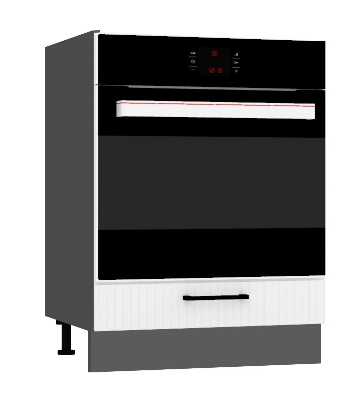 Kuchyňa ATENA je štýlový a atraktívny nábytok v retro štýle. Kuchyňa je kombináciou minimalizmu, modernosti a klasickej elegancie v jednej podobe.Korpus nábytku je vyrobený zo 16 mm hrubej LTD dosky. Predné dvierka sú z MDF dosky s hrúbkou 16 mm. Sú potiahnuté PVC fóliou. Dolná kuchynská skrinka je v bielej farbe v matnom prevedení.Rozmery (š,v,h): 60 x 82 x 52,4 cm. Skrinka je určená na vstavanú rúru.Súčasťou je sokel v šedej farbe a nožičky.Pracovná doska a úchyty nie sú v cene. Je potrebné ich doobjednať.Dodávame v demontovanom stave.