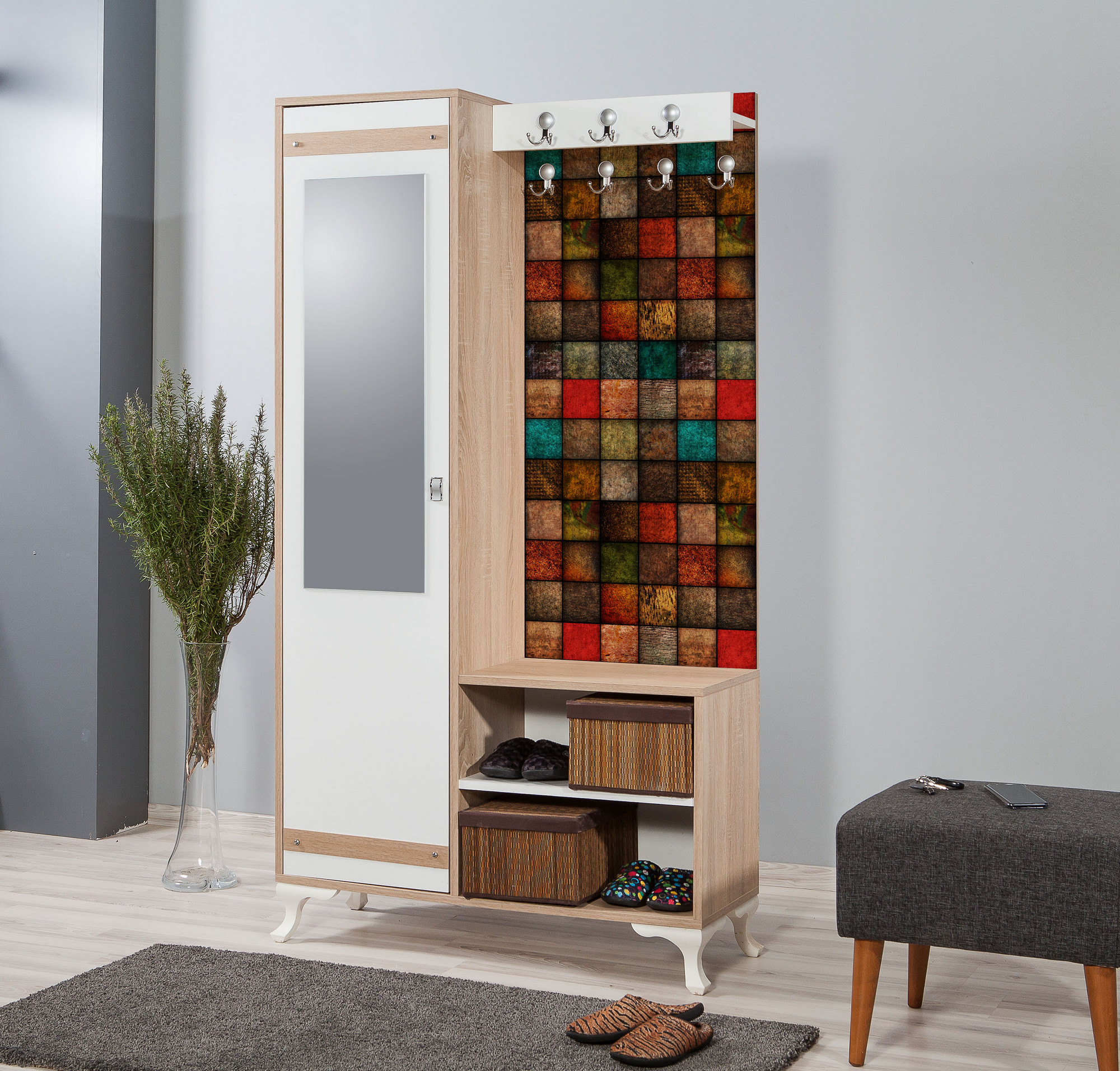Predsieňová zostava ATMO – štýlové riešenie pre vašu predsieňZariaďte svoju predsieň elegantne a prakticky s predsieňovou zostavou ATMO. Tento moderný kus nábytku v dekore dub Sonoma kombinuje štýlový vzhľad s funkčnými prvkami, ako je skriňa so zrkadlom a praktický vešiak.Špecifikácia predsieňovej zostavy ATMO:Materiál: melamín, VT laminátFarba: dub SonomaRozmery: 190 x 100 x 36 cmZostava obsahuje: skriňa so zrkadlom, vešiakNohy: z hrabového drevaHrúbka materiálu: 18 mmDodatočné vlastnosti: UV náter pre vyššiu odolnosťMontáž: dodávame v demontePredsiňová zostava ATMO ponúka kombináciu praktických prvkov a estetického dizajnu. Skriňa so zrkadlom nielenže poskytuje úložný priestor na vaše oblečenie a doplnky, ale zrkadlo zároveň opticky zväčší priestor a uľahčí kontrolu vášho vzhľadu pred odchodom. Vešiak umožňuje ľahké zavesenie kabátov, tašiek alebo klobúkov.Vďaka UV náteru je povrch zostavy chránený pred poškriabaním a vyblednutím, čo zaručuje dlhú životnosť. Nohy z hrabového dreva zaisťujú stabilitu a pridávajú zostave elegantný nádych.Jednoduchá montáž a praktický dizajnPredsieňová zostava ATMO je dodávaná v demonte a ľahko ju zostavíte pomocou priloženého návodu. Je ideálnym riešením pre každého, kto hľadá kombináciu funkčnosti a štýlu.Zaobstarajte si predsieňovú zostavu ATMO a premeňte svoju predsieň na moderný a elegantný priestor.