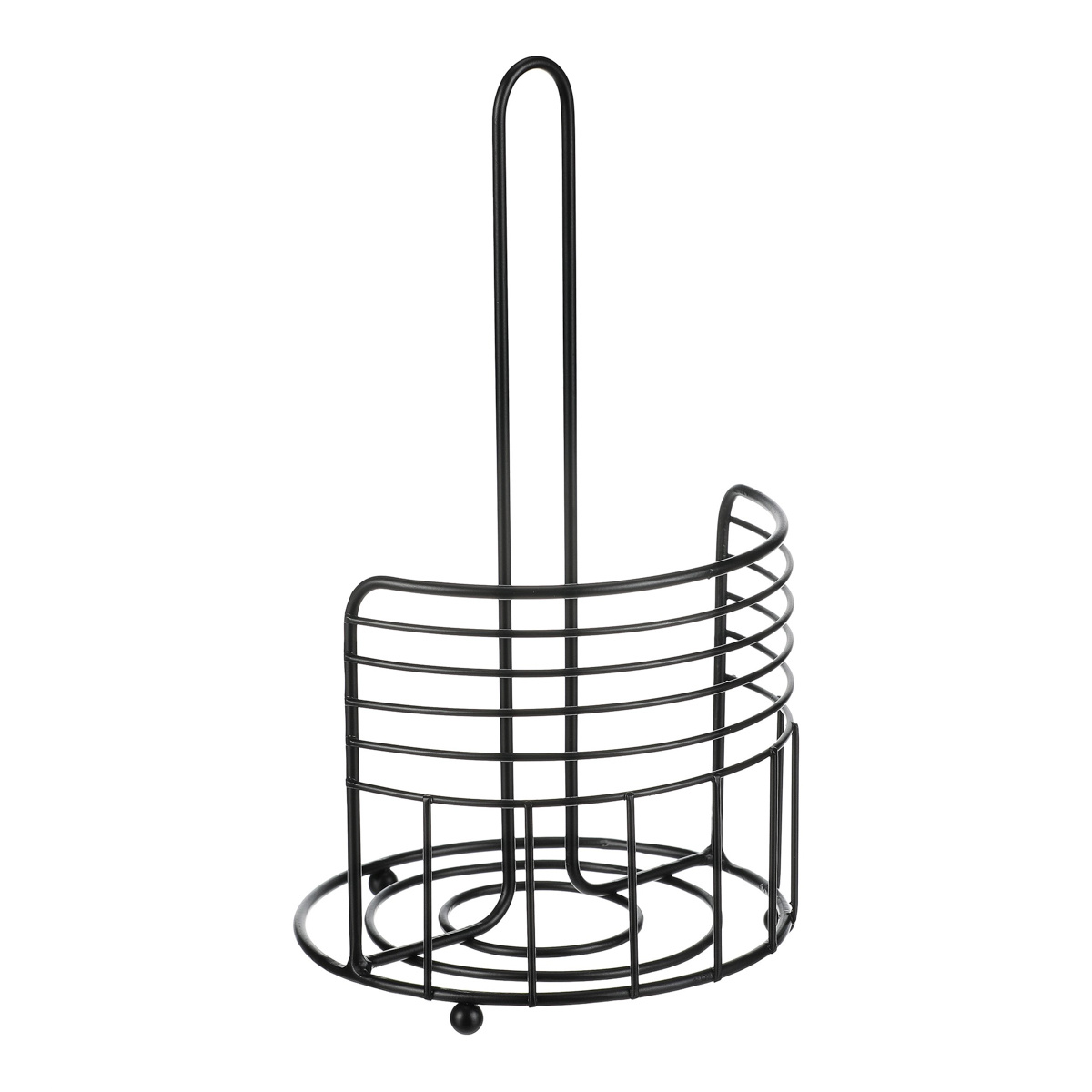 Tento elegantný kovový stojan na papierové utierky vyniká moderným dizajnom a praktickým prevedením. Okrúhly tvar spolu s jemnou drôtenou konštrukciou dodáva kuchynskému priestoru štýlový a vzdušný vzhľad, zatiaľ čo čierna povrchová úprava zaisťuje nadčasovú eleganciu.