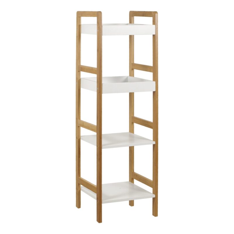 Drevený policový regál je vhodný na použitie do predsiení, hál alebo kúpeľní. Možno ho tiež využiť ako nízky regál na odkladanie rôznych doplnkov a potrieb v domácnosti. Nosnosť každej police je až 3 kg.materiál: konštrukcia regála: lakovaný bambus, police: biela MDF