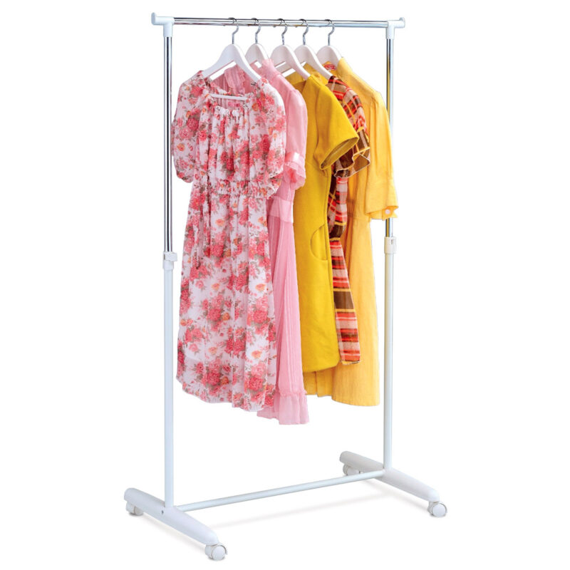 Chcete mať obľúbené kúsky oblečenia stále po ruke? Kúpte si tento jednoduchý a praktický stojan. Vďaka kolieskam ho môžete bez problému presúvať, kam práve potrebujete. Výškovo nastaviteľný od 94 do 160 cm.Stojan je určený do domácností a nie je určený pre záťažovú prevádzku. Dodávané v rozloženom stave.
