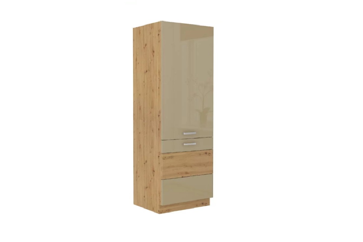 Nábytok AXEL je elegantný a výnimočný sektorový nábytok, ktorý je vhodný do nadčasových a moderných interiérov. V našej ponuke nájdete množstvo prvkov, z ktorých si zostavíte kuchyňu podľa vašich predstáv.Korpus skrinky je vyrobený z kvalitnej LTD dosky, ktorá sa jednoducho udržiava. Je vo farebnom prevedení dubu artisan. Dvierka sú vyrobené z MDF dosky potiahnuté PVC fóliou. Ich farebné prevedenie je v kombinácii farieb: capucino, dub artisan. Úchyty sú vyrobené z kovu. Sú v striebornej farbe.Kuchynská skrinka je vysoká, dvojdverová. Rozmery (š,v,h): 60 x 210 x 57 cm.Dodávame v demontovanom stave.