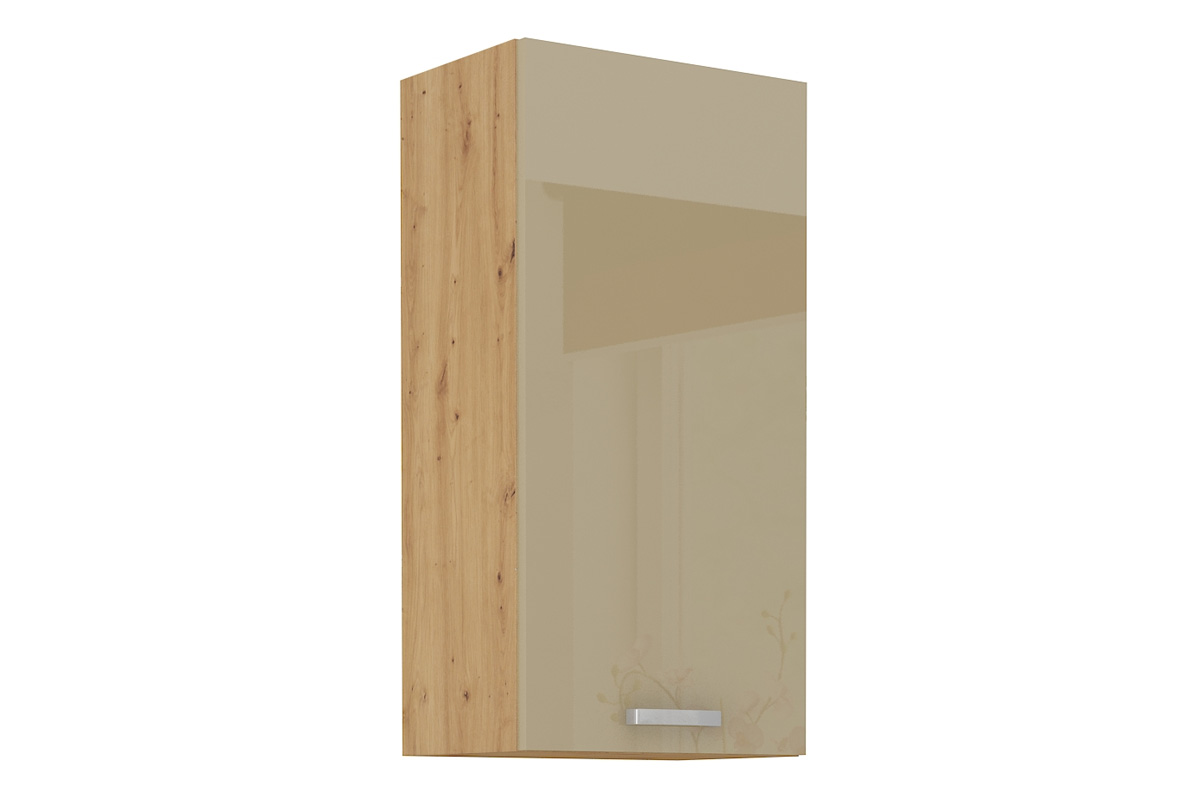 Nábytok AXEL je elegantný a výnimočný sektorový nábytok, ktorý je vhodný do nadčasových a moderných interiérov. V našej ponuke nájdete množstvo prvkov, z ktorých si zostavíte kuchyňu podľa vašich predstáv.Korpus skrinky je vyrobený z kvalitnej LTD dosky, ktorá sa jednoducho udržiava. Je vo farebnom prevedení dubu artisan. Vo vnútri sa nachádzajú 3 police.Dvierka sú vyrobené z MDF dosky potiahnuté PVC fóliou. Ich farebné prevedenie je v kombinácii farieb: capucino, dub artisan. Úchyty sú vyrobené z kovu. Sú v striebornej farbe.Horná kuchynská skrinka je jednodverová. Rozmery (š,v,h): 45 x 90 x 31 cm.Dodávame v demontovanom stave.