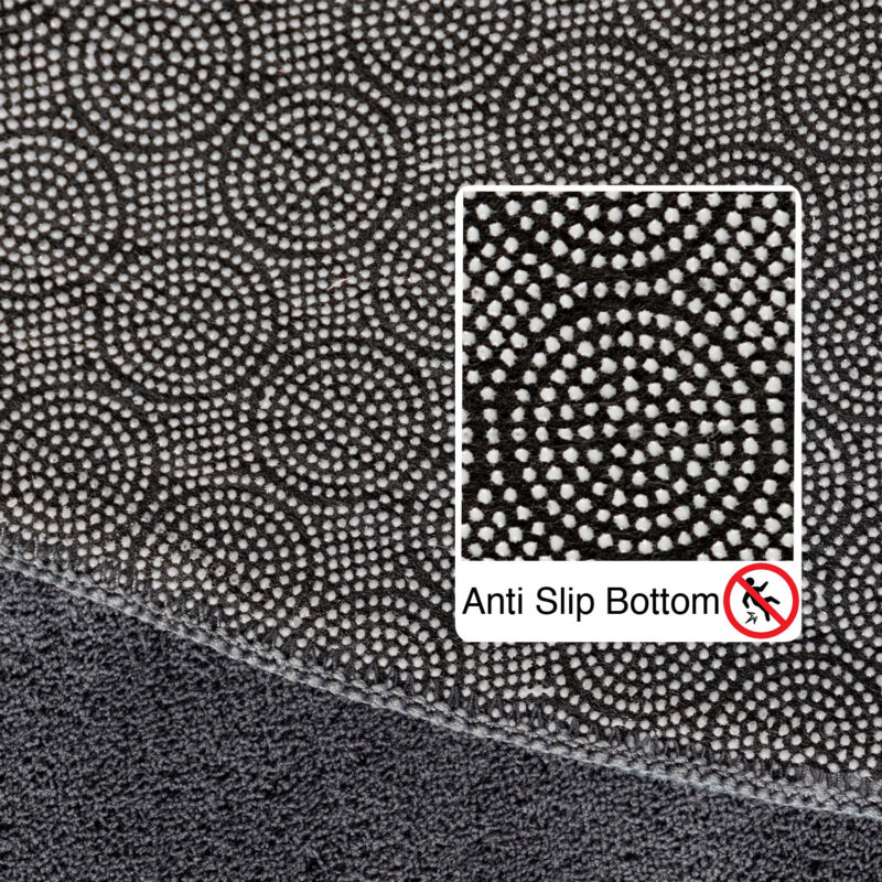 Kusový okrúhly koberec v elegantnej šedej farbe je skvelou voľbou pre každý interiér. Polyesterový povrch je príjemný na dotyk a pôsobí elegantne v každom priestore. Protišmyková gumová základňa drží koberec pevne na mieste aj pri intenzívnej prevádzke. Hodí sa najmä do obývacej izby, kde vynikne jeho štýl a funkčnosť.